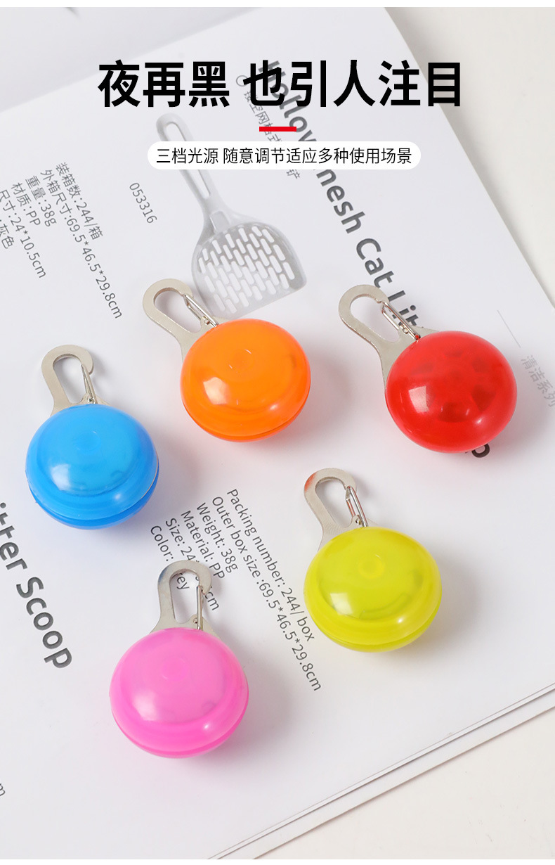 Redonda luminosa etiqueta de perro de noche gato pasear perro pasear anti-perdida colgante de flash LED para mascotas colgante luminoso