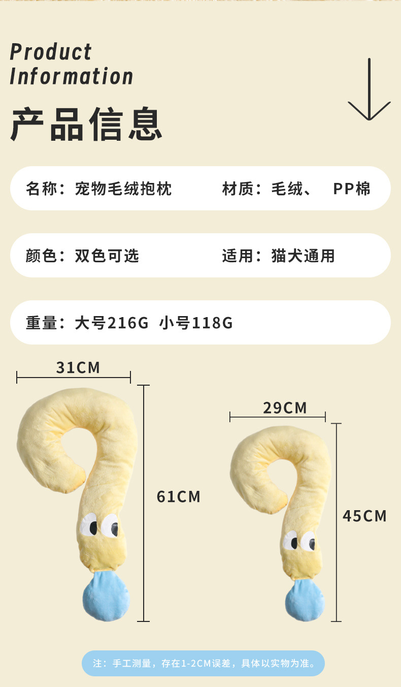 Almohada para perros Four Seasons Universal Big Eye Siser de interrogación Almohada para mascotas de felpa Protección para gatos Almohadilla para dormir cervical Fábrica al por mayor