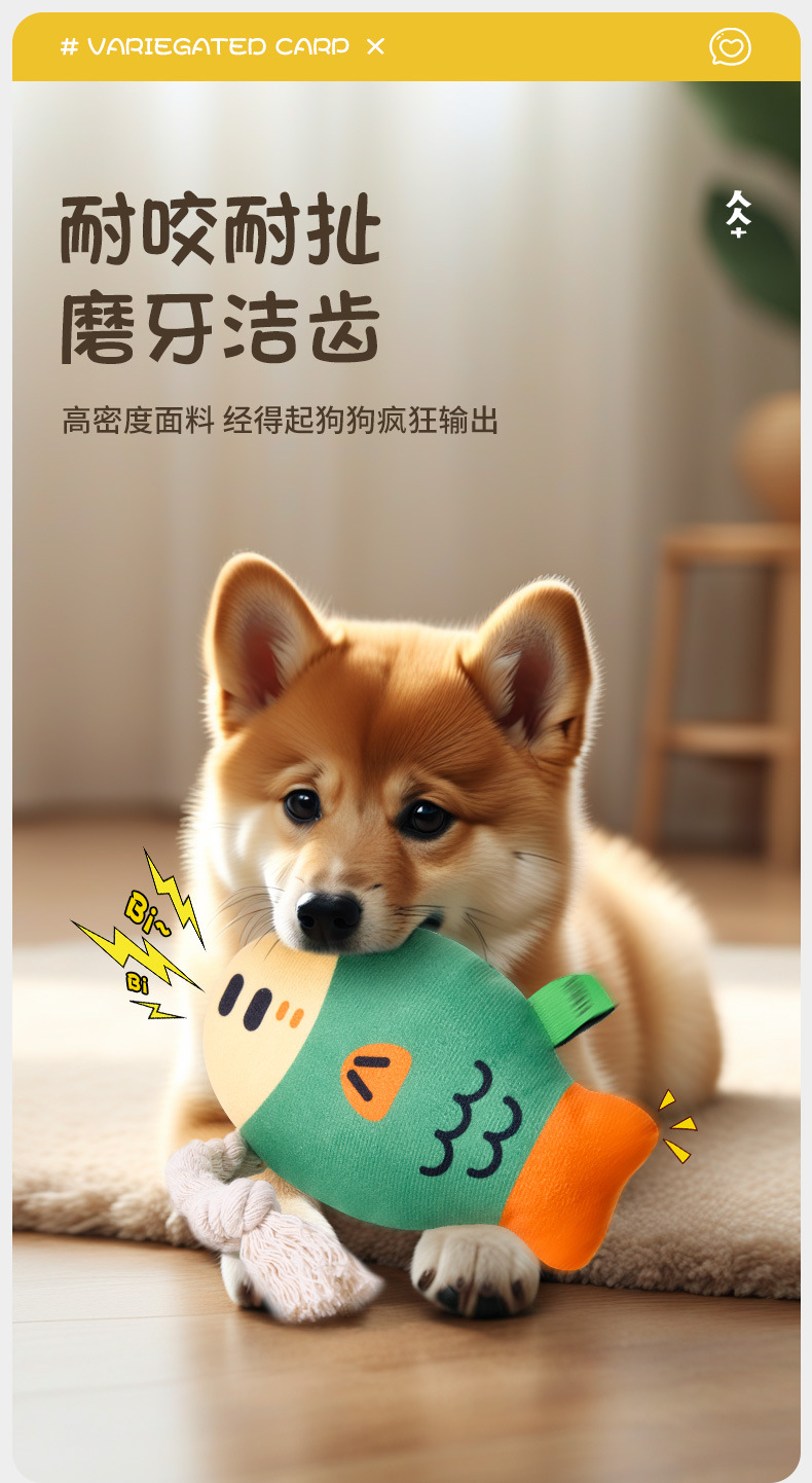 Nuevo juguete para perros con sonido, simulación de pescado de cabeza gorda, rechinar los dientes, limpiar los dientes, auto-alivio, cuerda de algodón, juguetes para mascotas, venta al por mayor transfronteriza