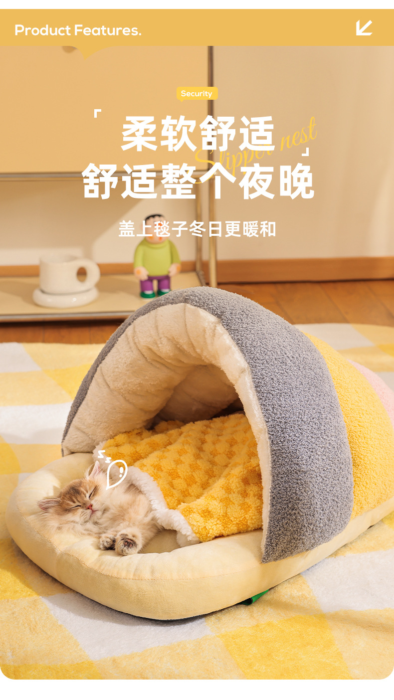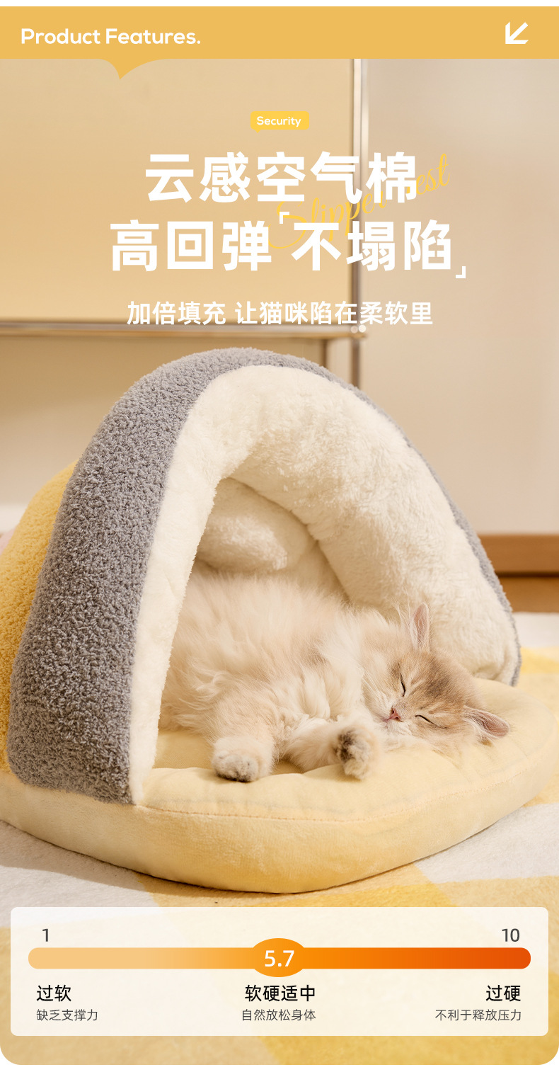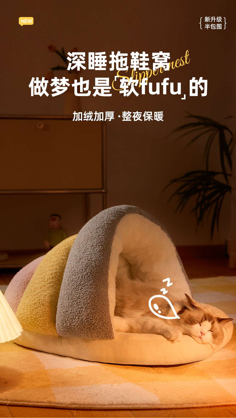 Nuevos modelos de otoño e invierno, zapatillas universales de vellón de nube, nido de gato cálido semicerrado, nido de perro pequeño y mediano, nido de mascotas transfronterizo
