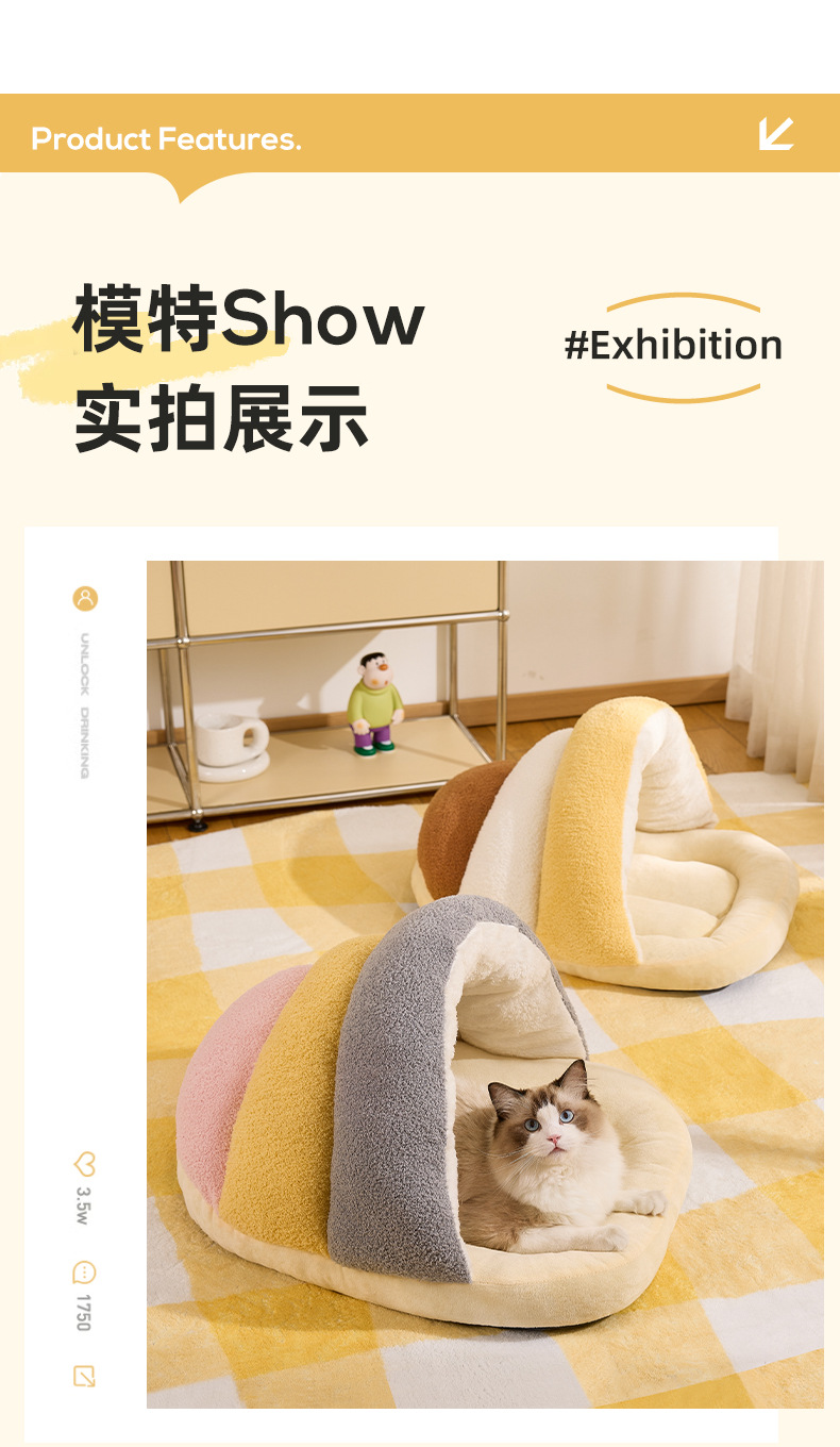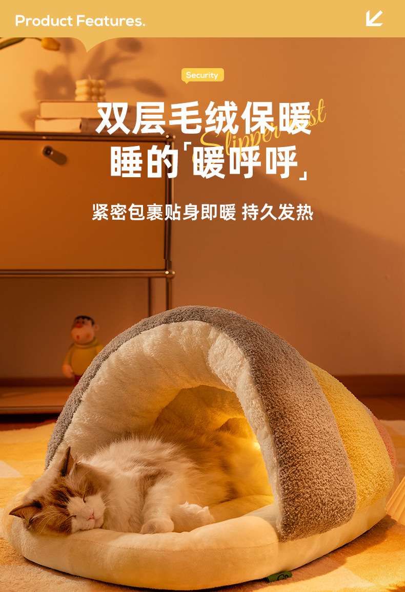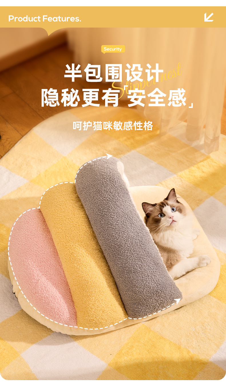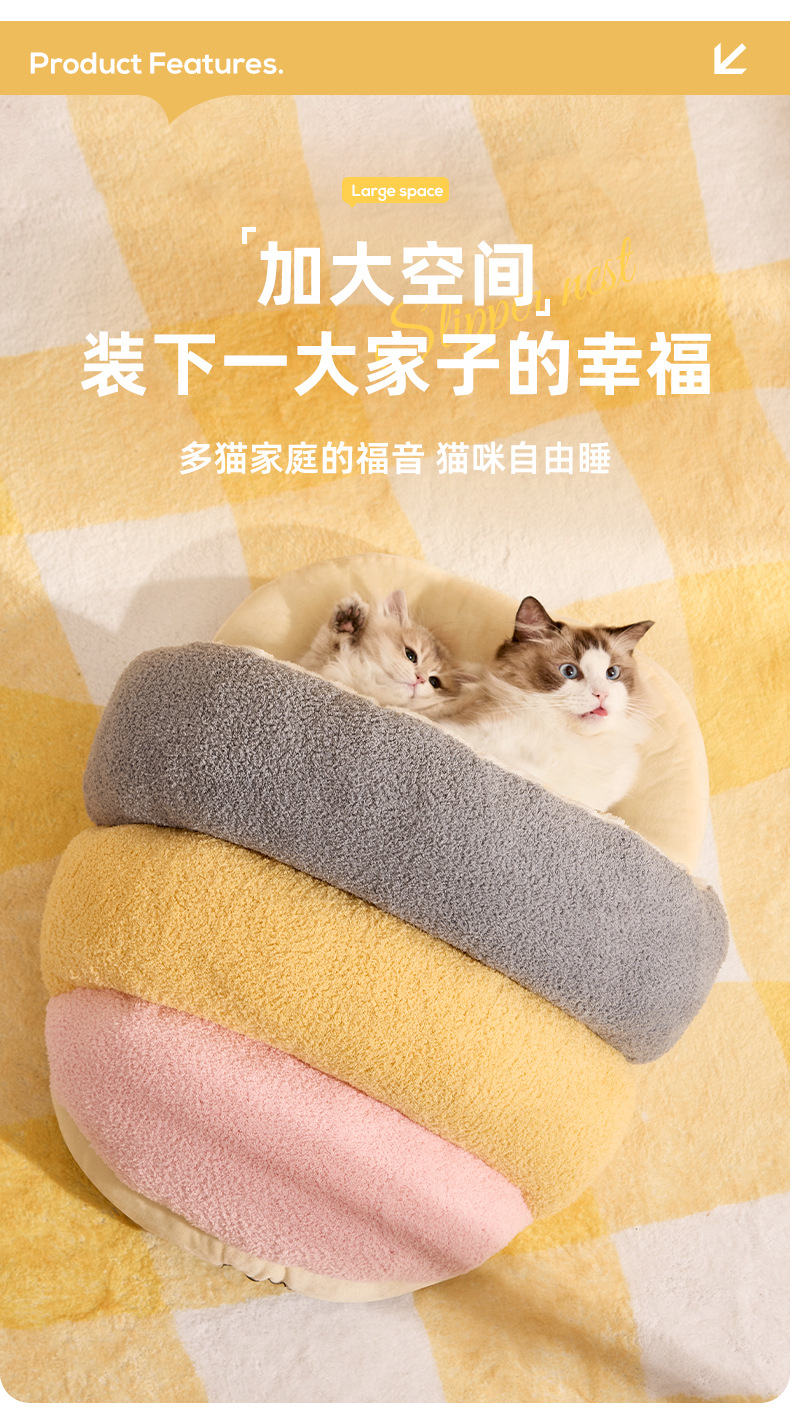 Nuevos modelos de otoño e invierno, zapatillas universales de vellón de nube, nido de gato cálido semicerrado, nido de perro pequeño y mediano, nido de mascotas transfronterizo