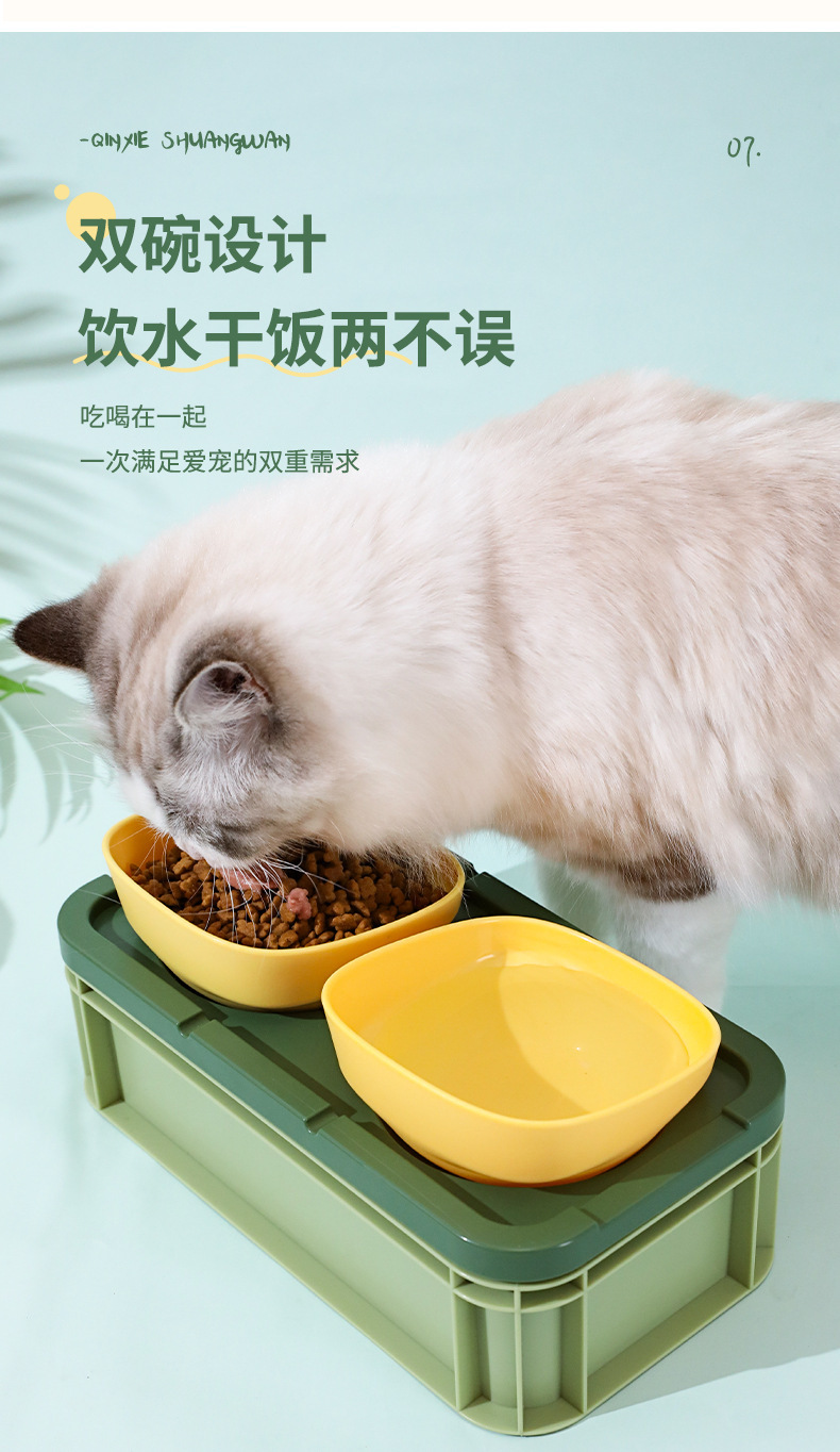 Hawo gato tazón doble tazón de alimentación agua potable protección cervical columna vertebral perro cuenca gato tazón integrado anti-knock suministros para mascotas