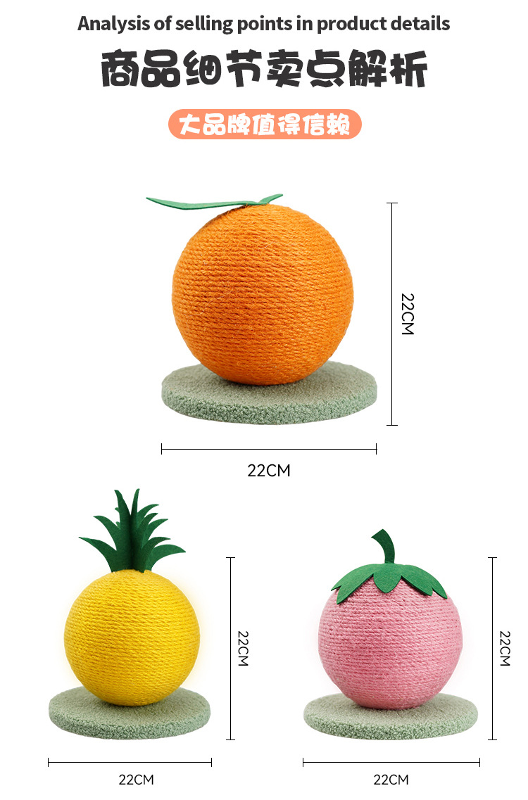 Tablero de agarre de gato Bola de sisal Juguetes de frutas Suministros de garra de pulido de gato pequeño y mediano