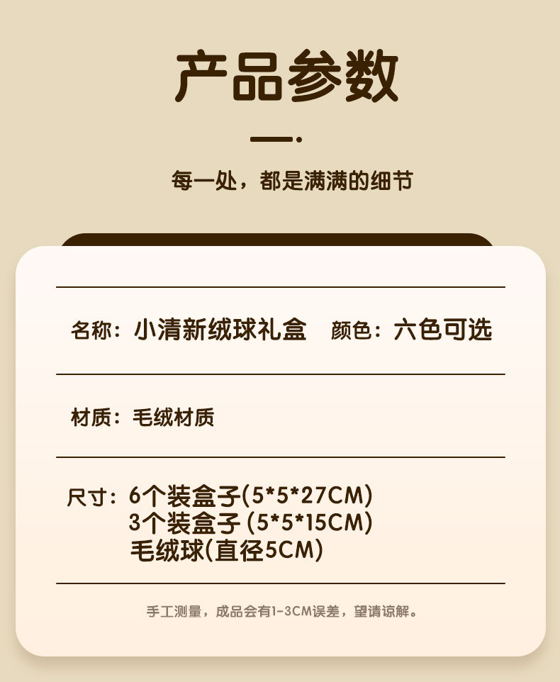 | Colores | Pequeño pompón fresco único bolsa opp,Caja de regalo de pompones 6 piezas,3 paquetes de caja de regalo de pompones frescos |