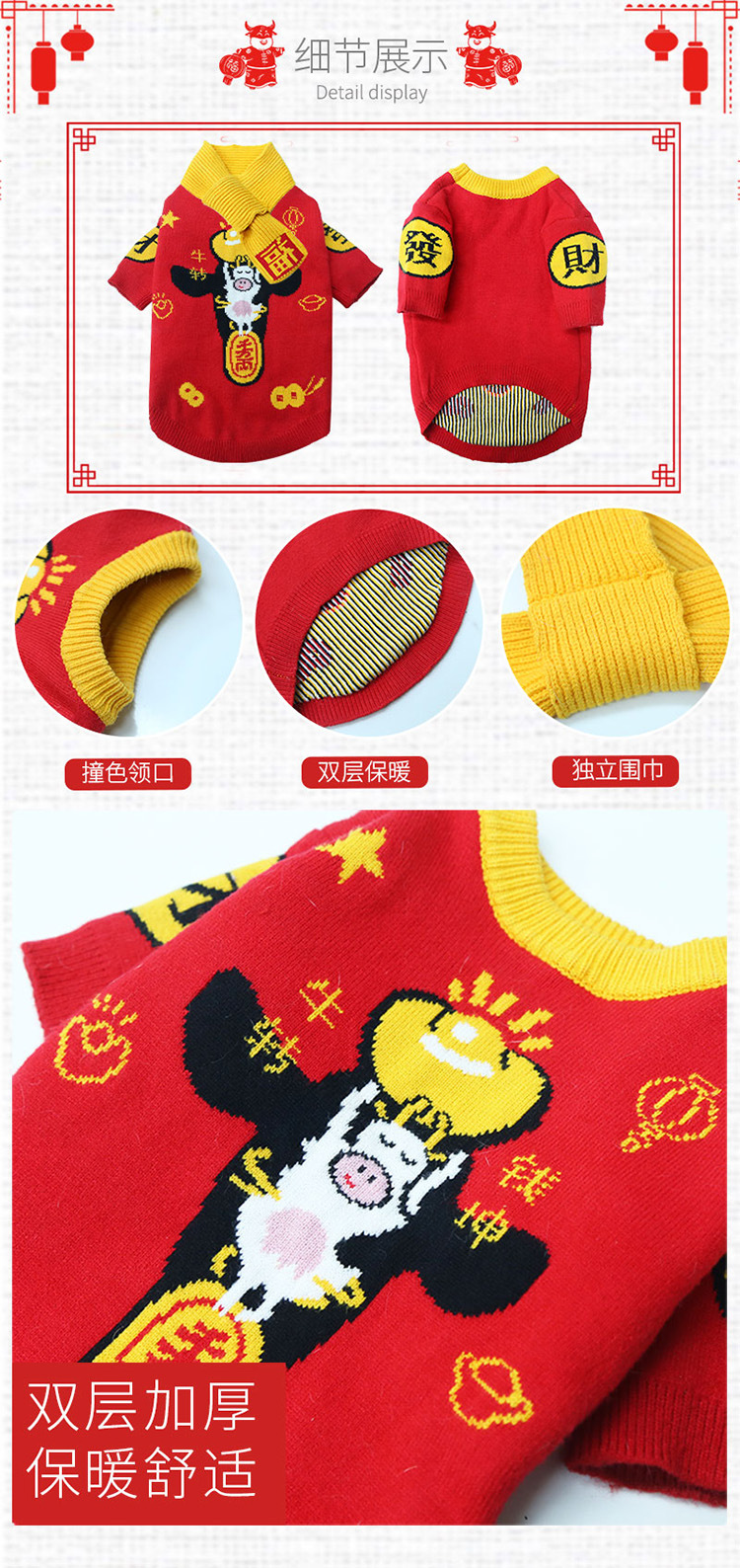 Liquidación cubo francés caliente engrosada ropa acolchada de algodón año nuevo lana mediano y grande perro gato bufanda ropa para mascotas suministros