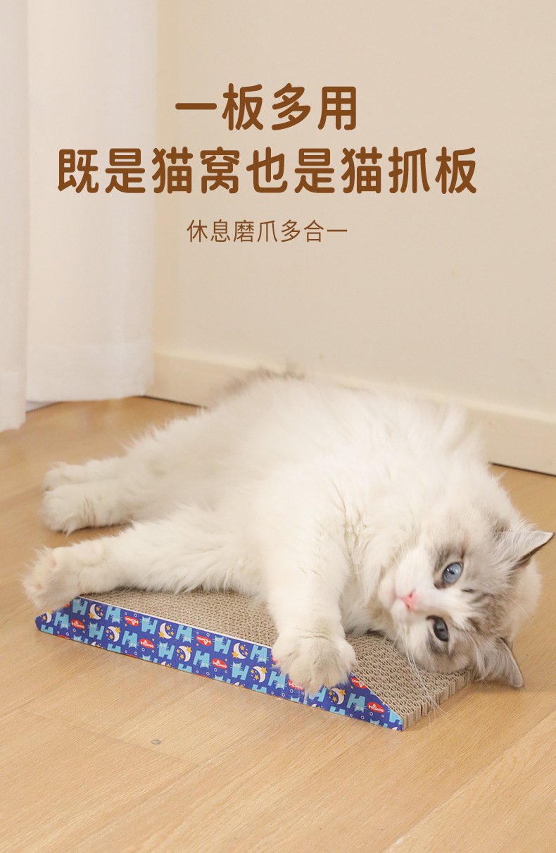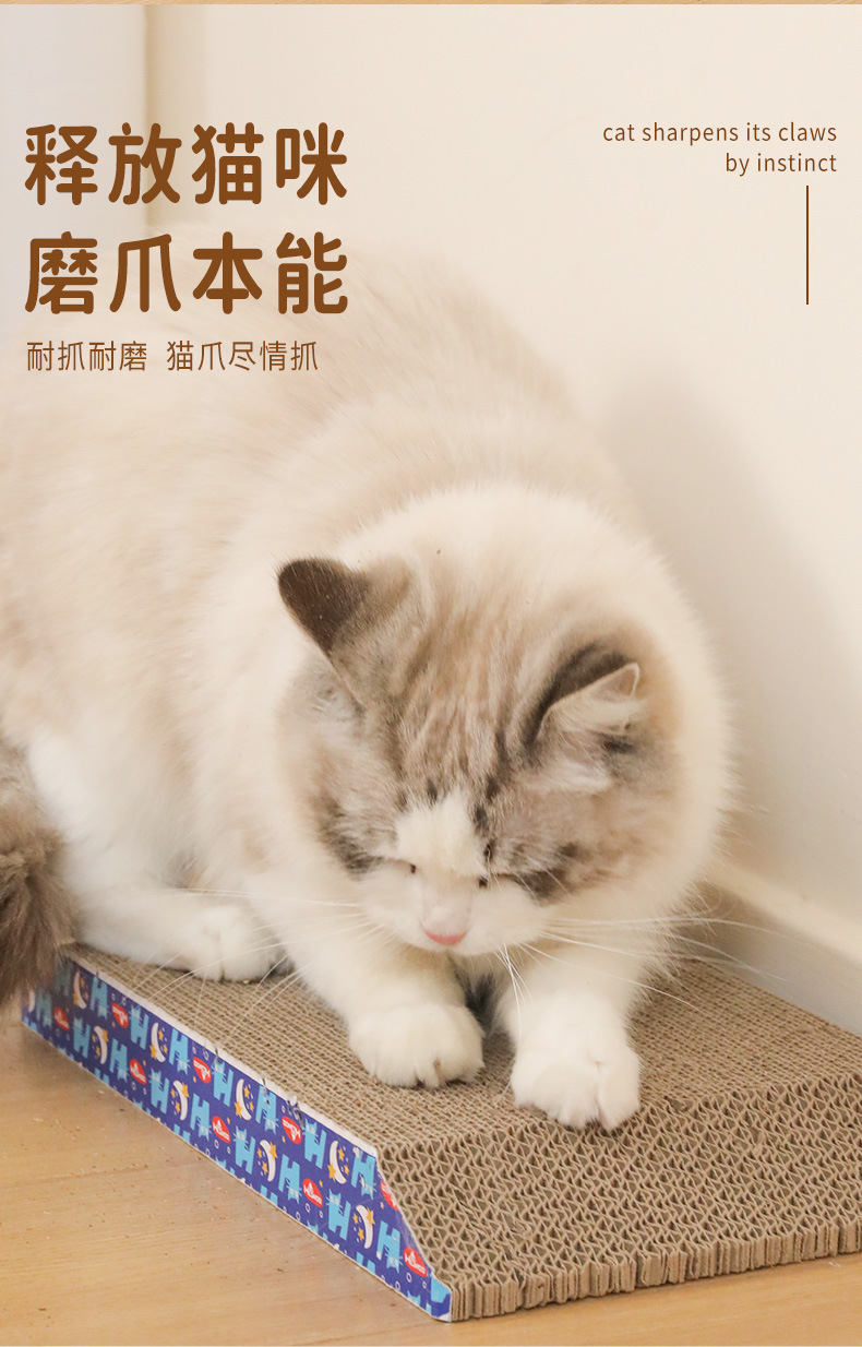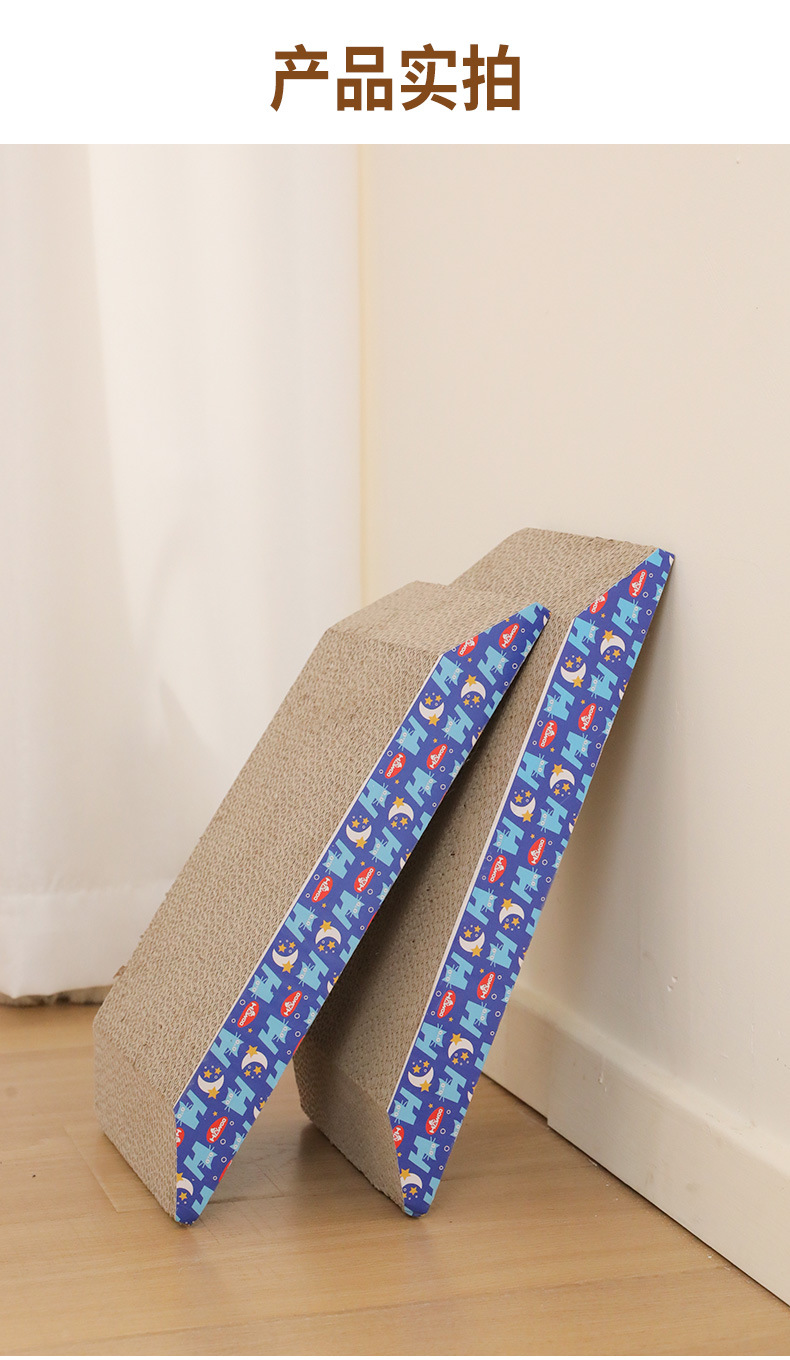 Grueso tablero del rasguño del gato trapezoidal en stock al por mayor de alta densidad papel corrugado enviar catnip gato grande juguete