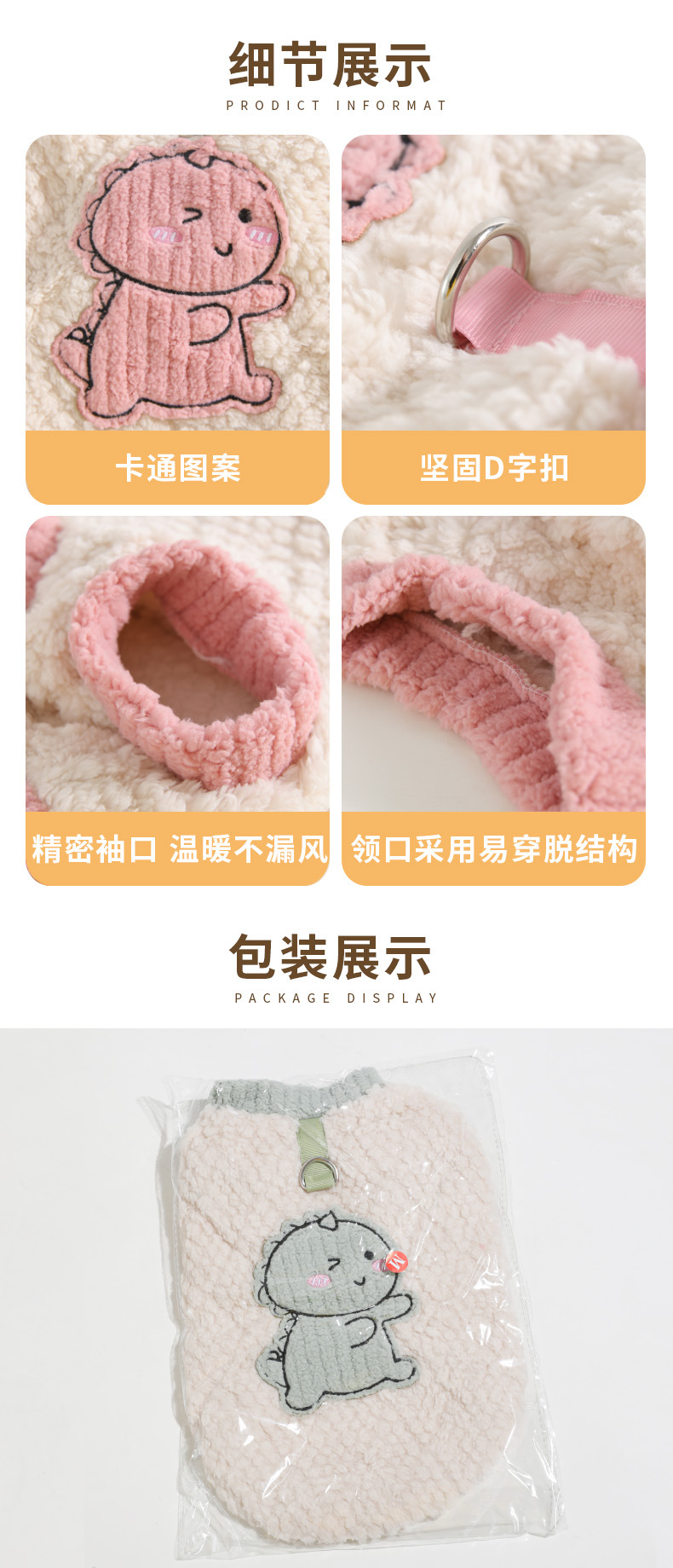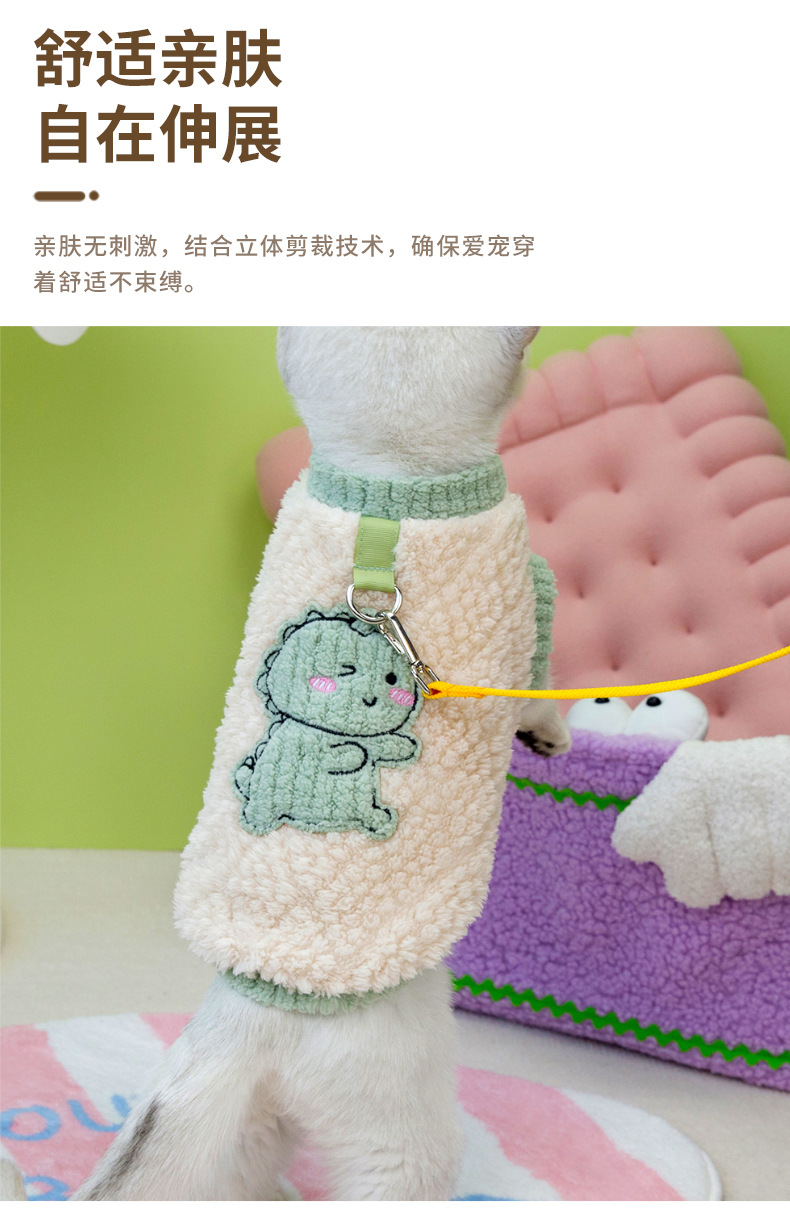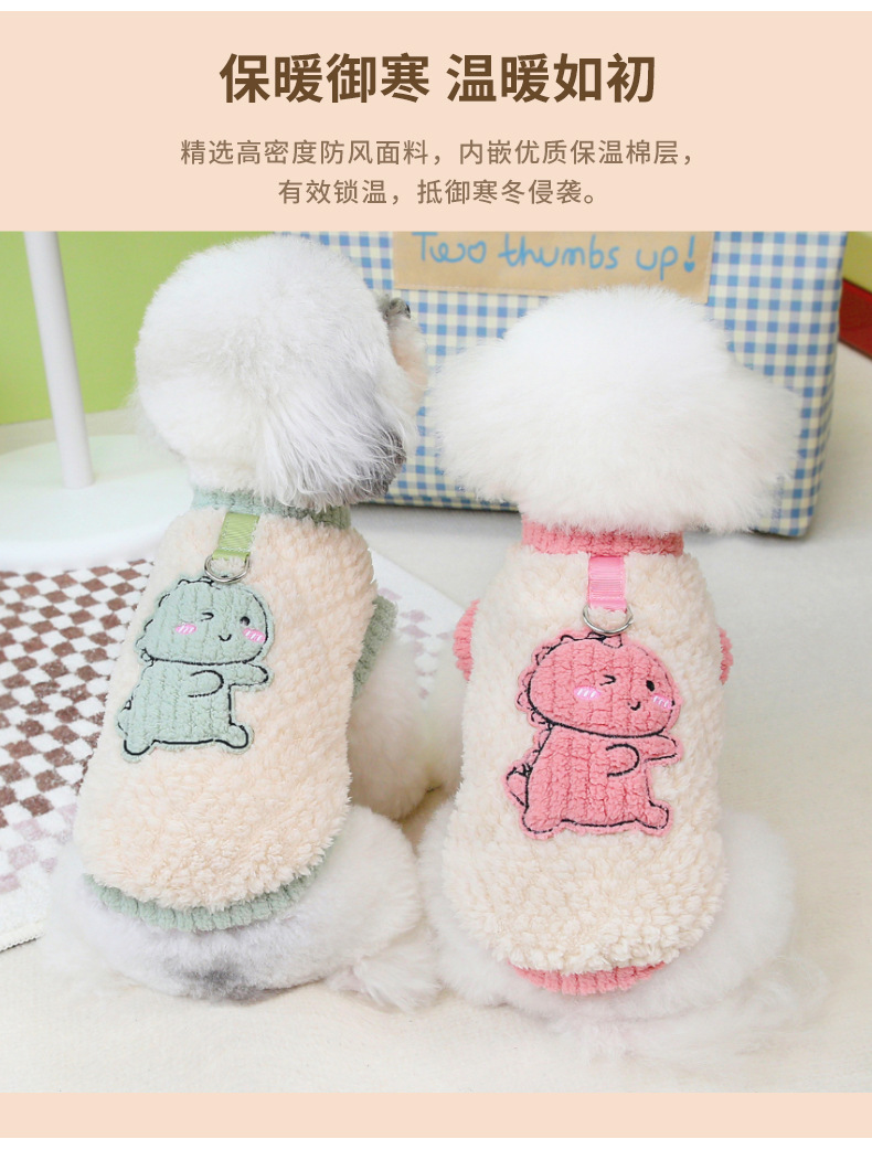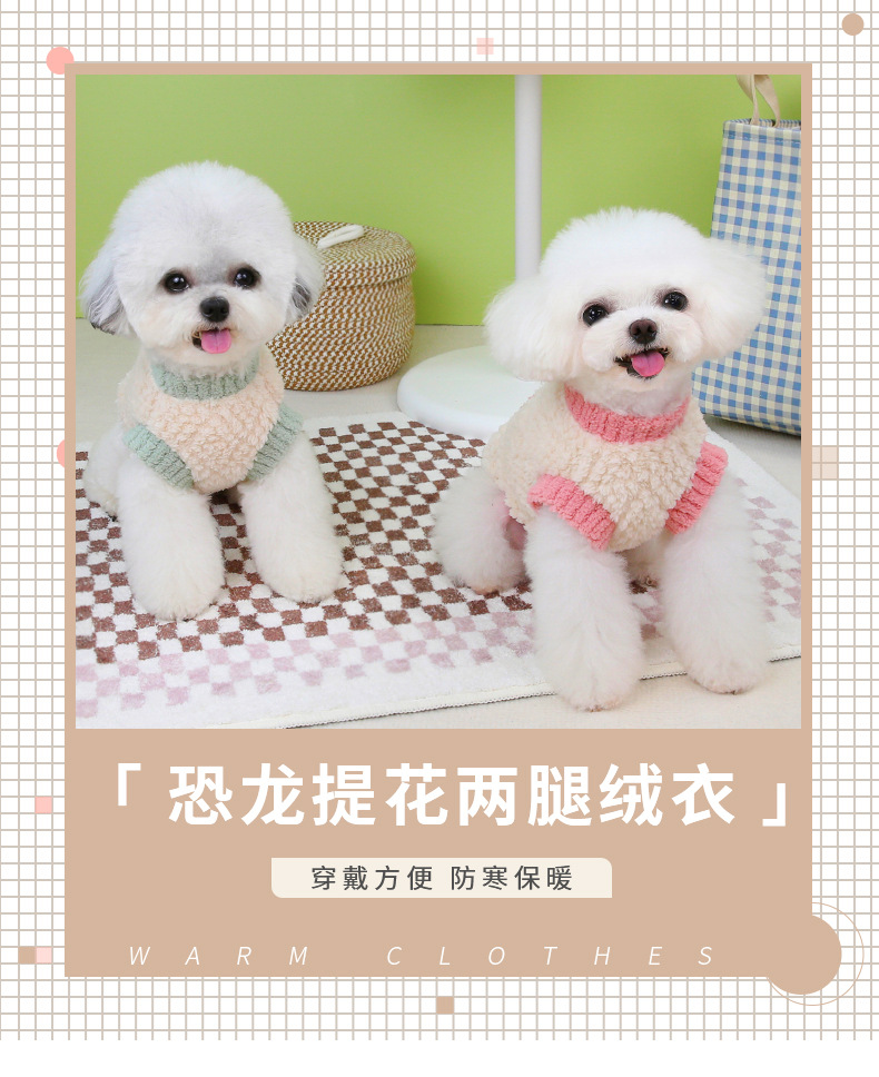 Perro otoño invierno grueso abrigo de terciopelo pequeño dinosaurio con hebilla de tracción ropa de piernas ropa de mascotas al por mayor