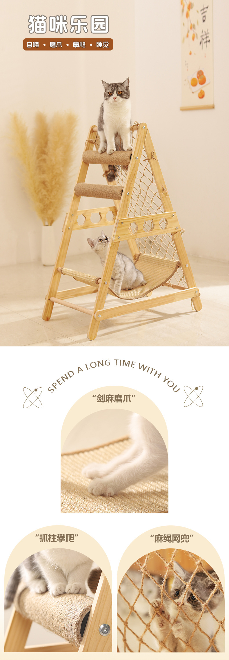 Estante de escalada de gato grande estante de gato nido de gato BULUS/brushi gato rascador de gato rascador tablero escalada red multifuncional gato hamaca