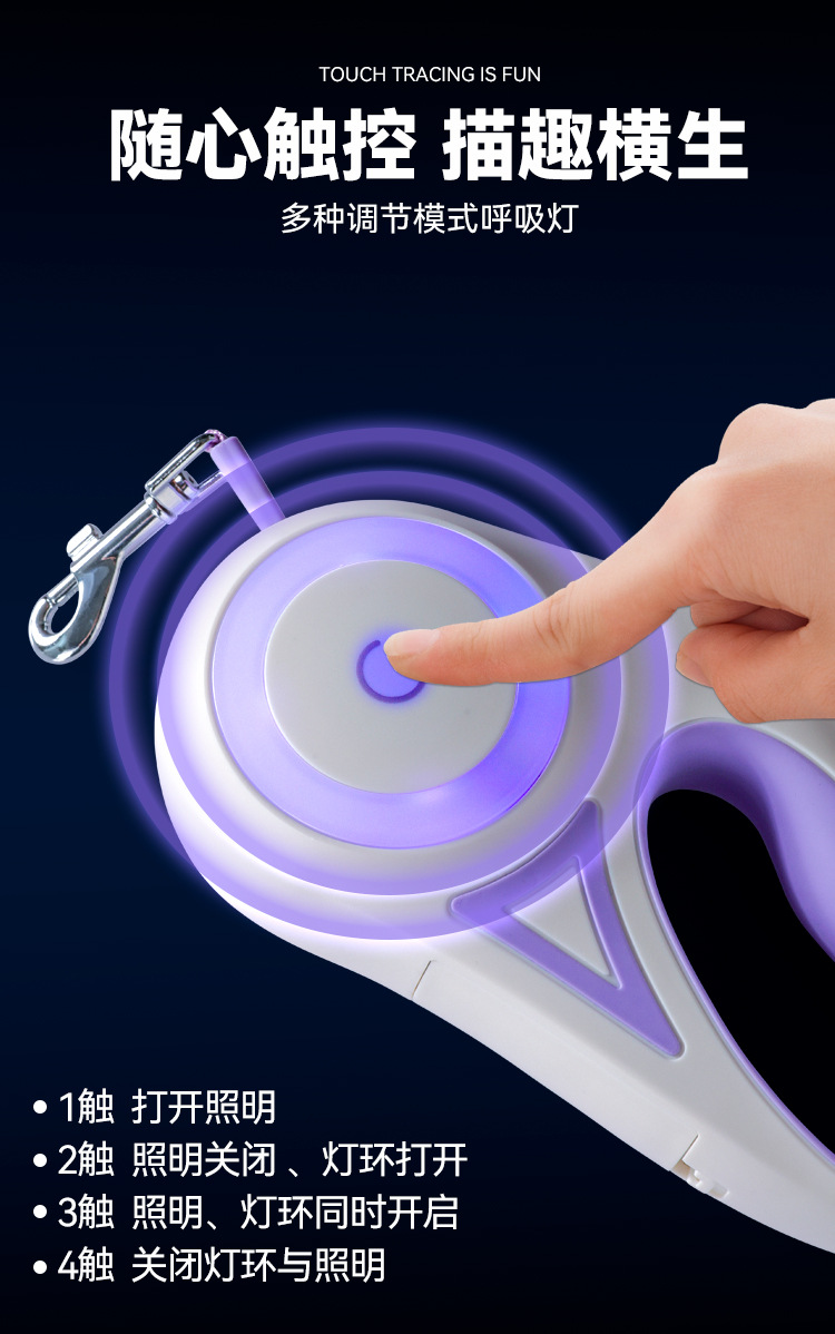 Nueva LED luminosa correa retráctil automática correa de perro suministros para mascotas Correa transfronteriza al por mayor