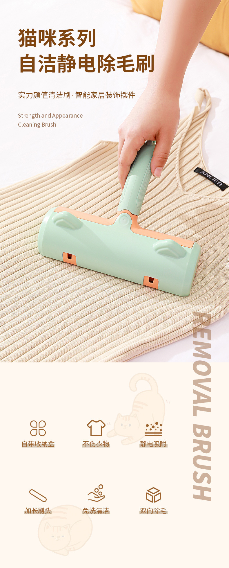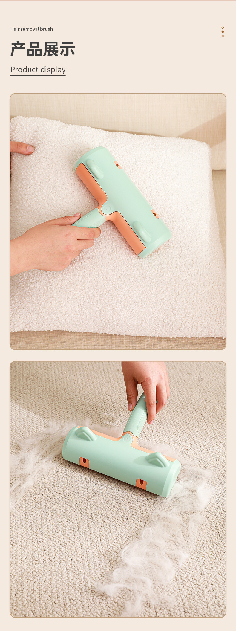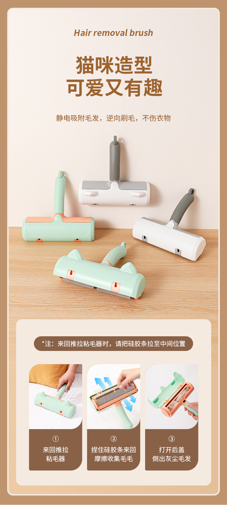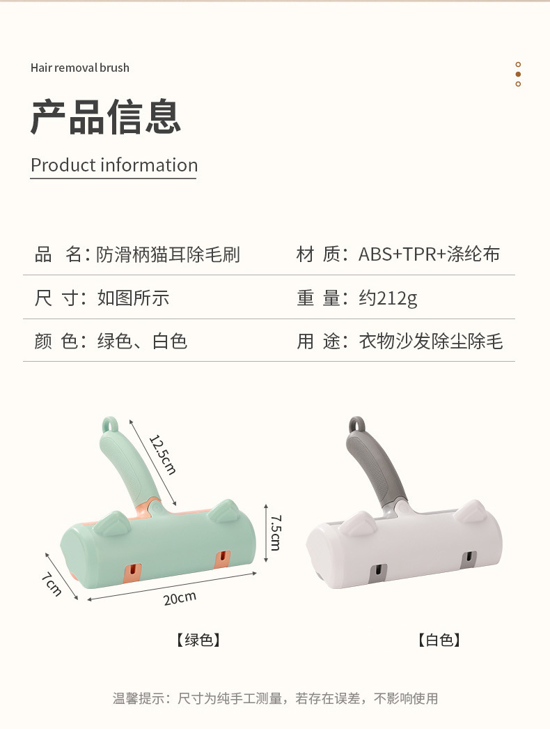 Colgando antideslizante mango oreja de gato cepillo de eliminación de pelo pegajoso traje de rodillo al por mayor hoja de cama cepillo de rodillo de eliminación de pelo lavable