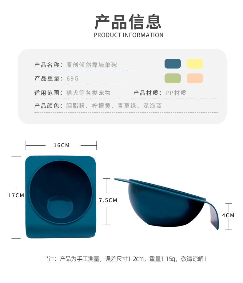 Cat Bowl inclinado contra la pared solo Tazón tazón de comida para gatos al por mayor tazón de comida para gatos perro Tazón de arroz para mascotas tazón de beber suministros para gatos