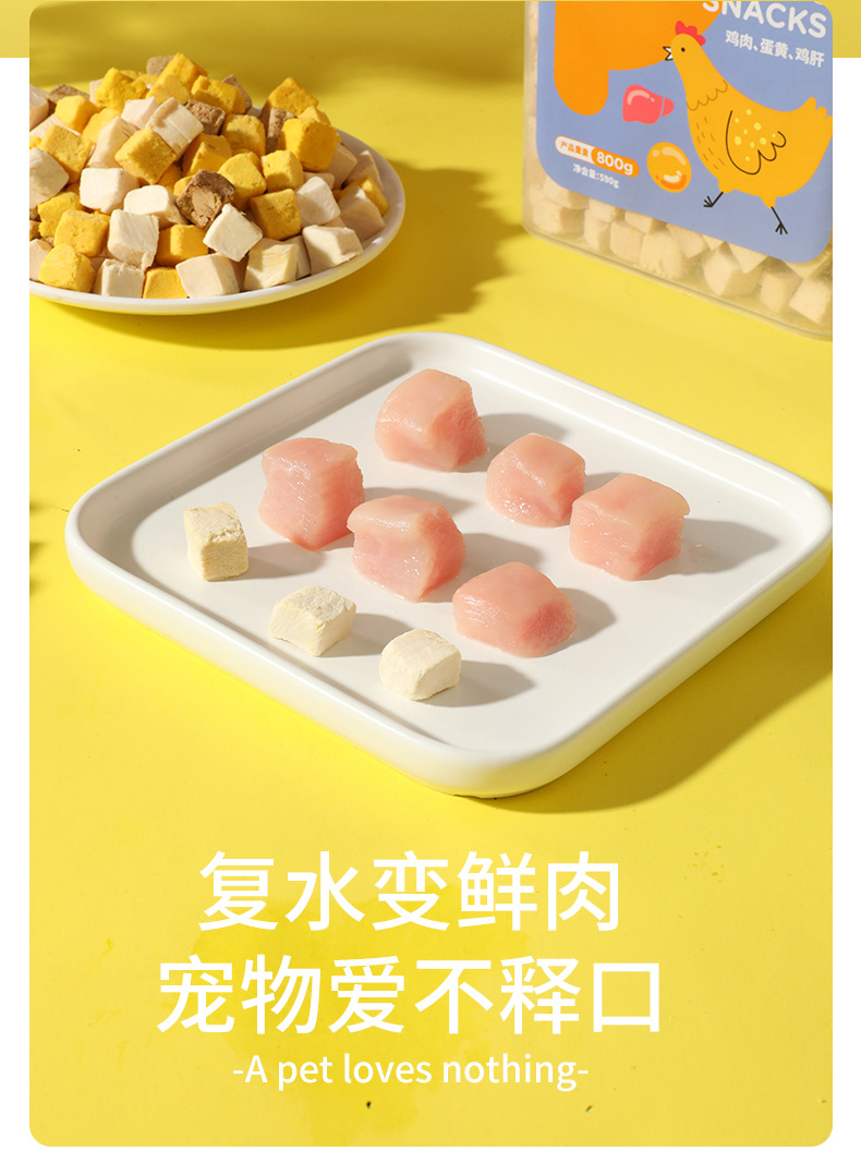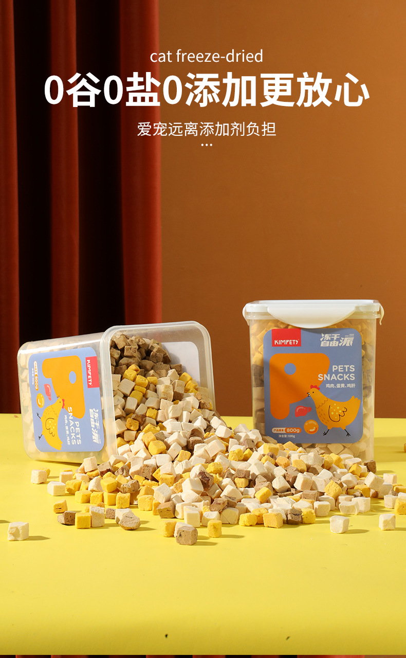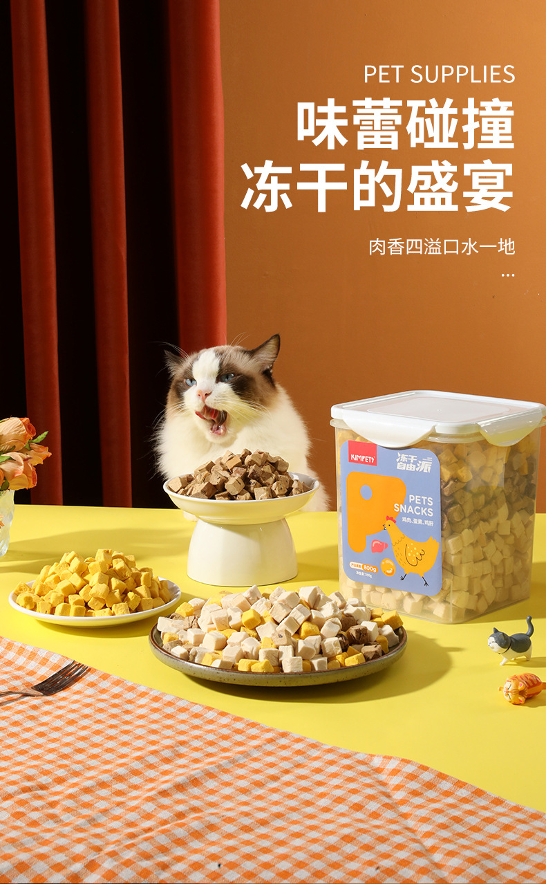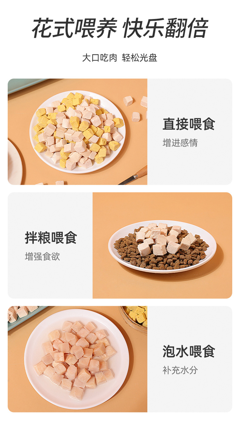 Nueva carne entera de tres colores liofilizada para gatos, gatitos, bocadillos, cubos de pollo, cubos familiares, comida liofilizada para perros y gatos al por mayor
