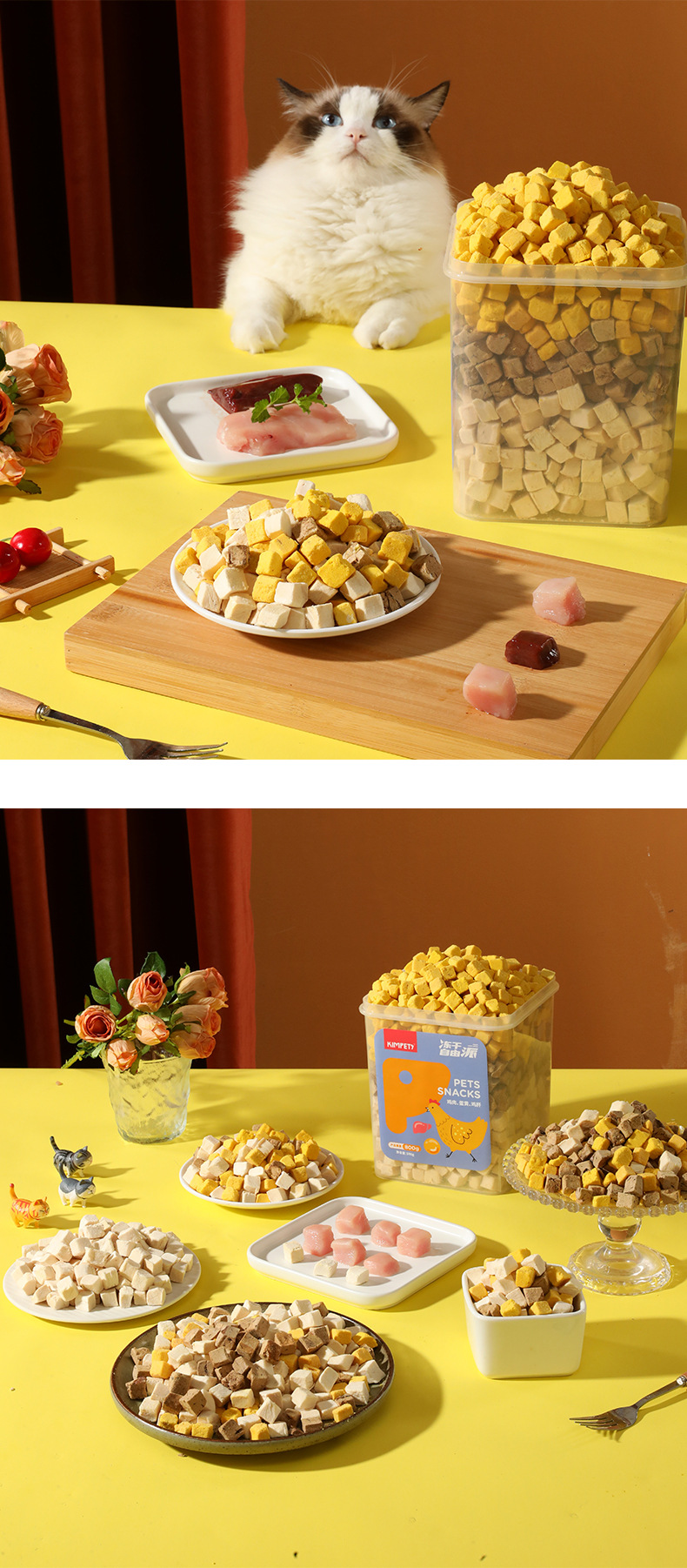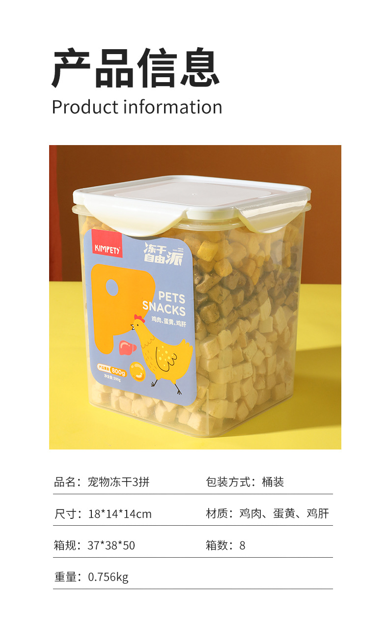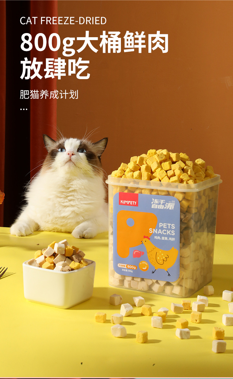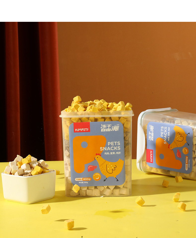 Nueva carne entera de tres colores liofilizada para gatos, gatitos, bocadillos, cubos de pollo, cubos familiares, comida liofilizada para perros y gatos al por mayor