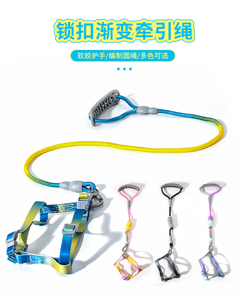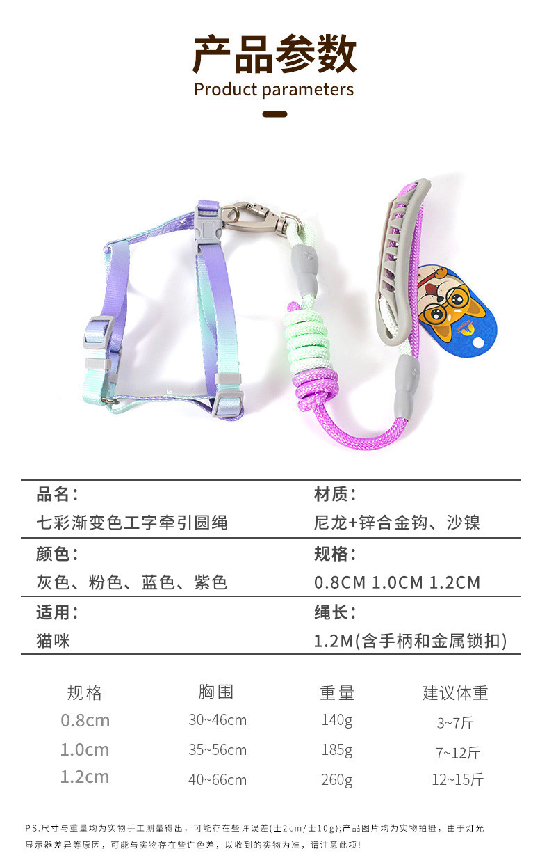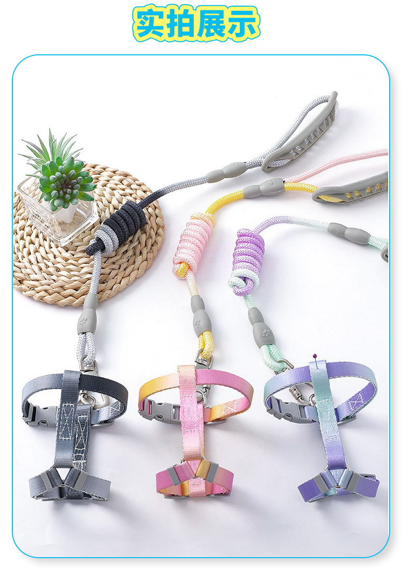 Correa de tracción en forma de I para gatos grandes, correa de tracción redonda con degradado de colores, correa para pasear gatos al aire libre, anti-strangulation, en paquete.