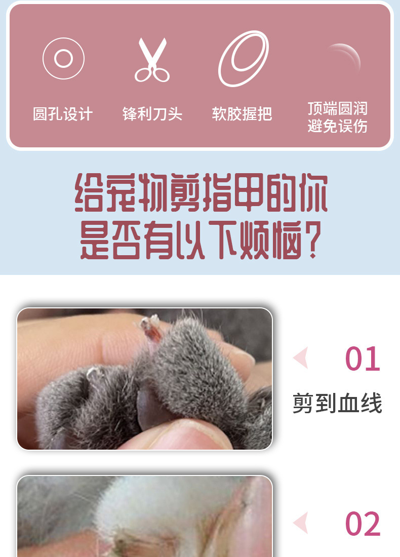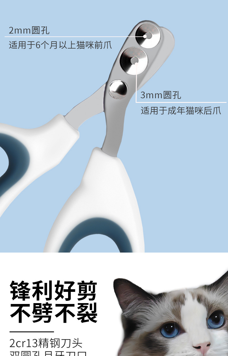 Cortaúñas de doble orificio redondo para mascotas, rectificador de uñas, limpieza especial, reparación de belleza, cortaúñas, suministros para uñas, venta al por mayor transfronteriza