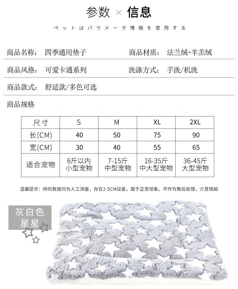 Pet Four Seasons universal manta de franela estera del perro de doble cara caliente corto felpa estera de algodón perro gato nido estera