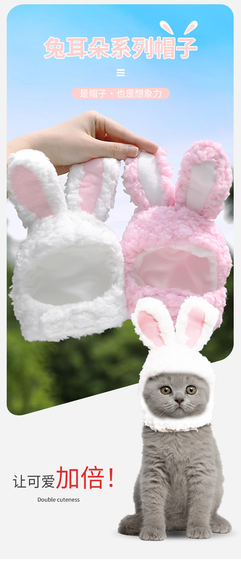 Gato, cordero, terciopelo de cordero, oreja de conejo, sombrero de dibujos animados universal para gatitos y perros, fabricantes de sombreros para mascotas pequeños y medianos al por mayor