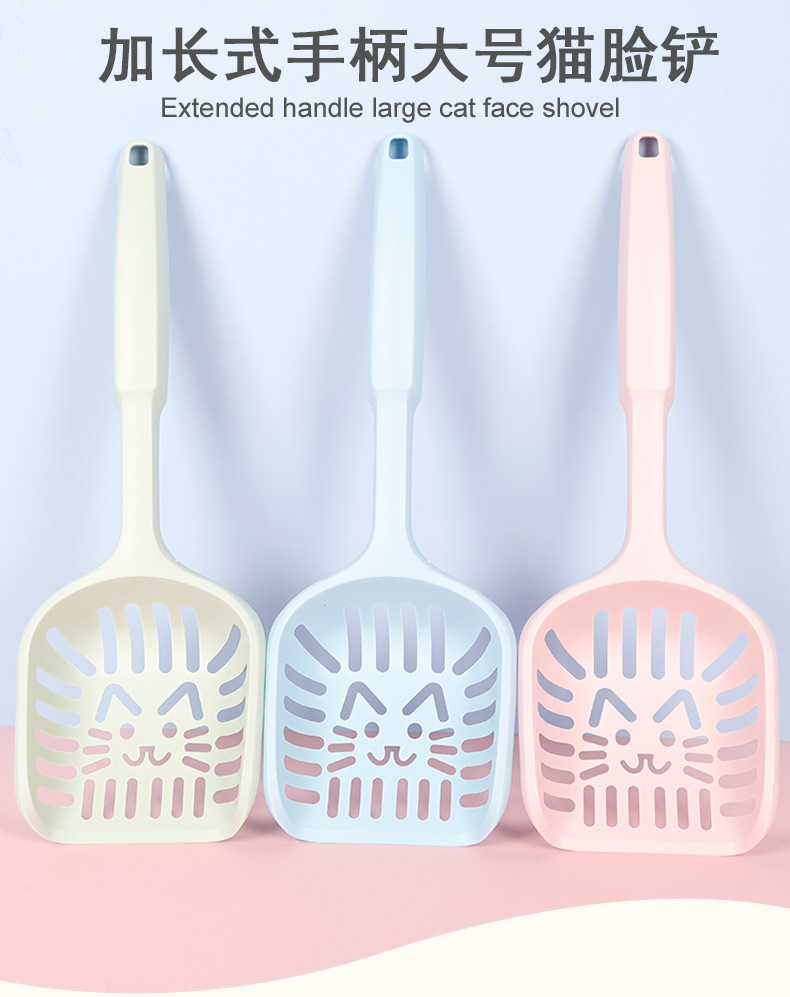 Pala grande para arena de gatos con mango extendido, diseño de cara de gato, herramienta especial de limpieza para caja de arena, pala para arena de mascotas.