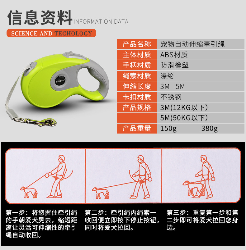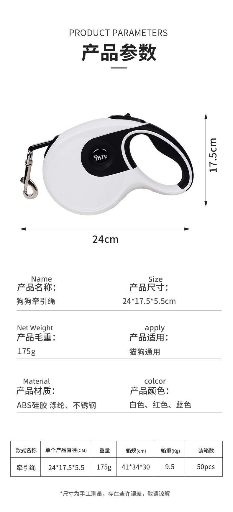 Cross-border 3/5/8 M correa de perro retráctil automática para mascotas suministros para mascotas correa de perro reflectante