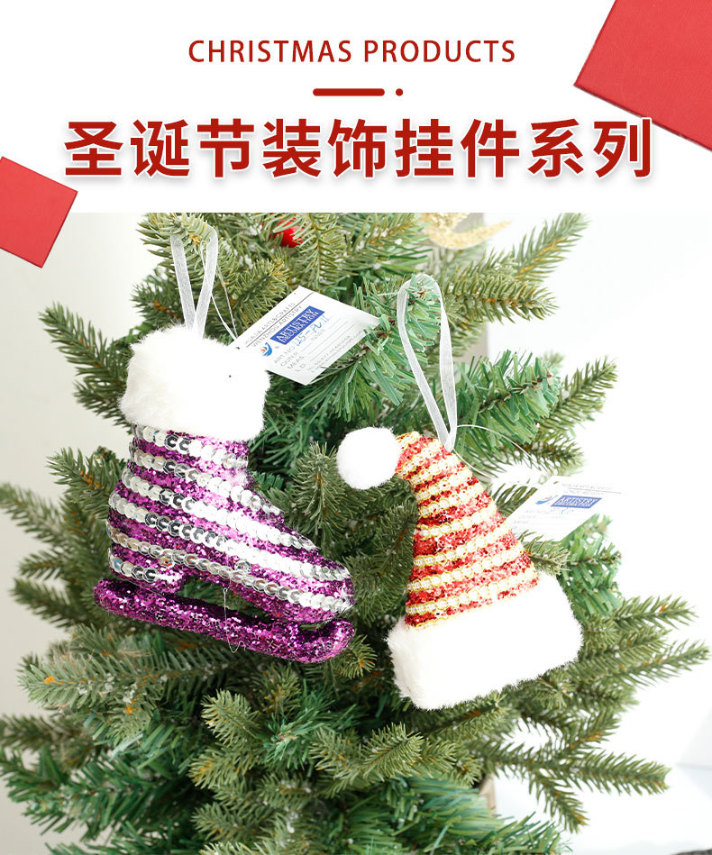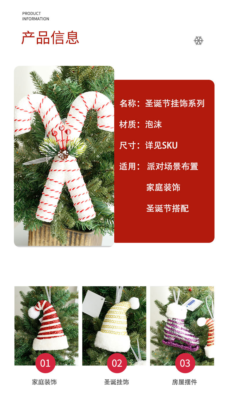 Comercio exterior espuma de Navidad polvo brillante muletas de Navidad sombrero de Navidad decoración de árbol de Navidad colgantes de ventanas vestido al por mayor