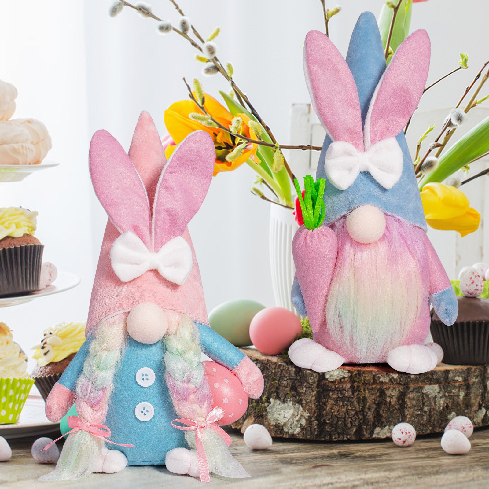 Conejo de Pascua transfronterizo muñeca sin cara rabanes huevos adornos atmósfera de fiesta adornos de decoración encantadores