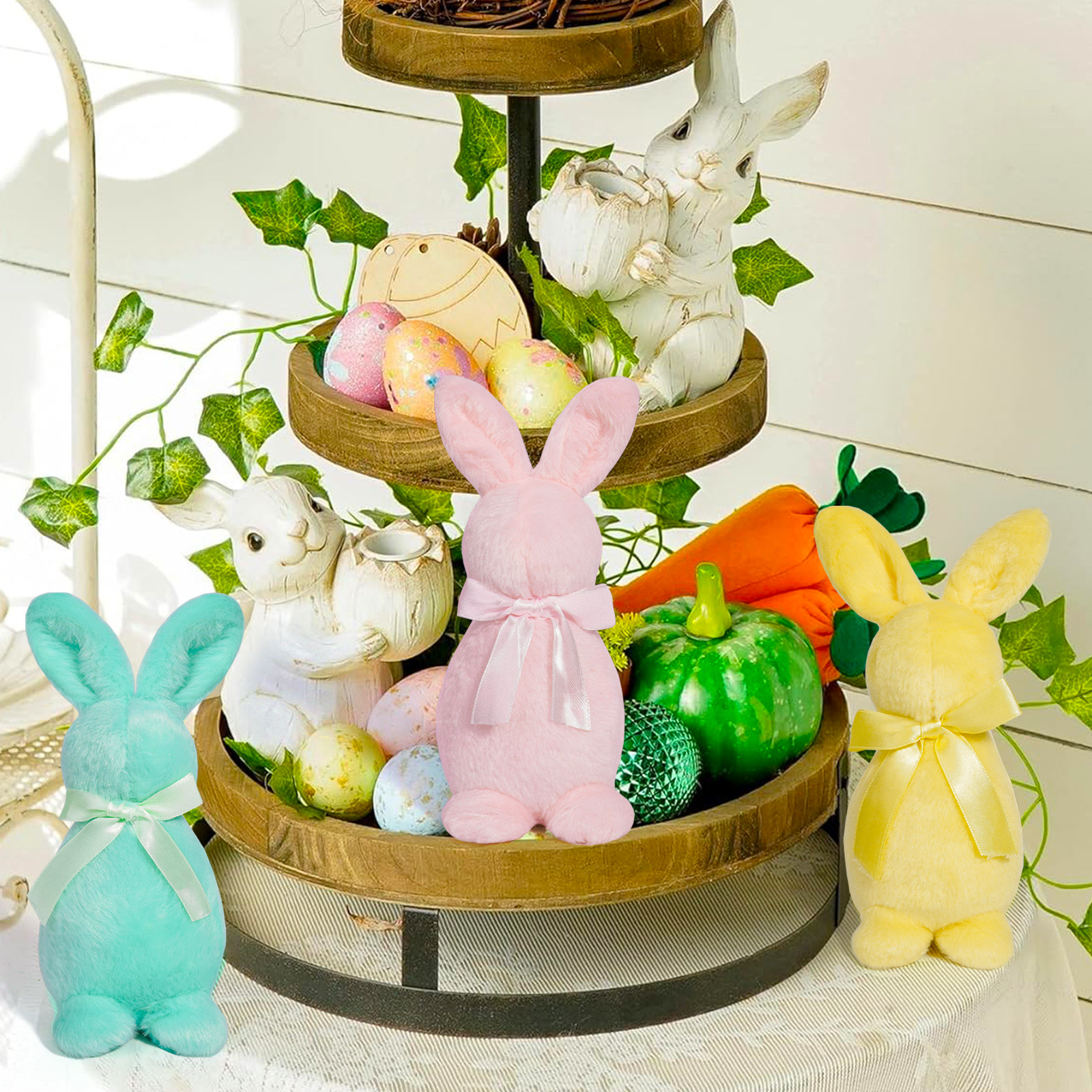 Cruz-frontera nueva decoración de Pascua conejo muñeca decoración amarillo rojo verde conejo muñeca regalo