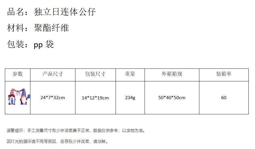 Día de la Independencia de los Estados Unidos Muñeca sin cara amor enano viejo muñeca set decoraciones regalos de vacaciones decoraciones