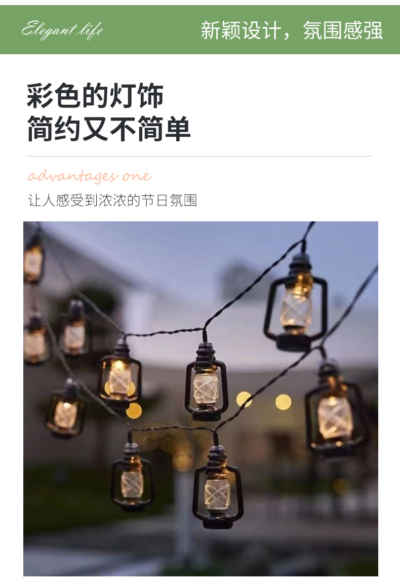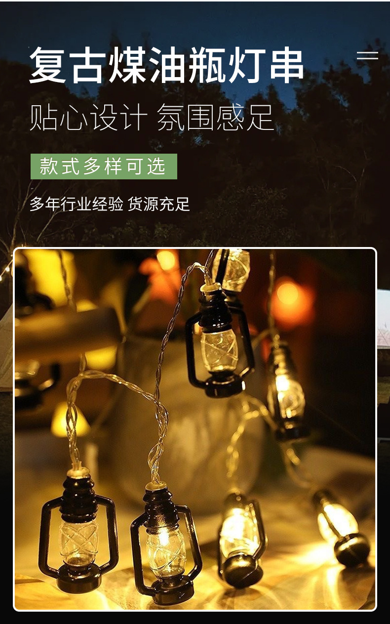 Botella de queroseno retro cadena de lámpara al aire libre camping impermeable skylight atmósfera diseño de lámpara solar cadena de lámpara decorativa