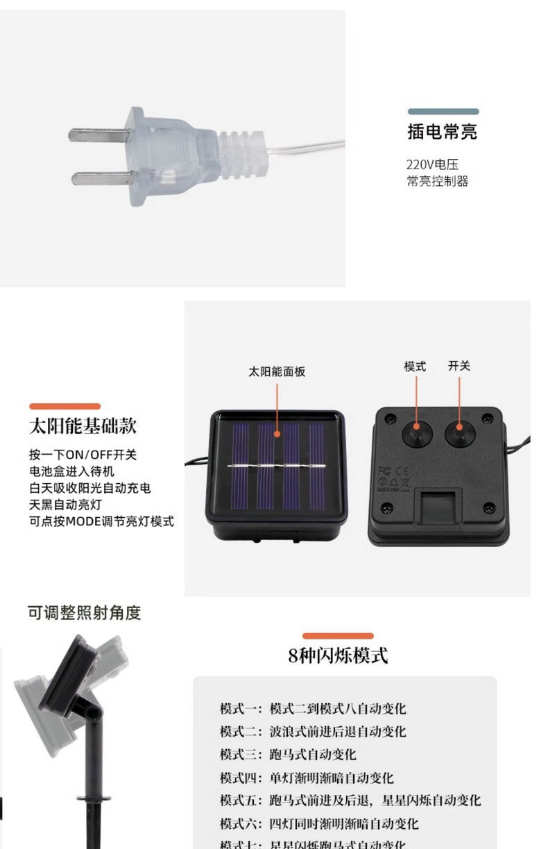 | Color | 1,5 metros 10 luces [modelo de caja de luz constante], 3 metros 20 luces [modelo de caja de luz constante], 3 metros 20 luces [modelo de caja de luz constante + modelo de caja de luz flash], 3 metros 20 luces [modelo USB de luz constante], 6 metros 40 luces [modelo USB de luz constante + modelo de caja flash], 6 metros 40 luces [modelo USB de luz constante], 10 metros 80 luces [modelo USB de luz constante], 10 metros 80 luces [modelo USB de luz constante], 10 metros 80 luces [modelo USB de luz impermeable], 5 metros 20 luces [modelo solar], 6,5 metros 30 luces [modelo solar], 7 metros 50 luces [modelo solar], 12 metros [modelo solar]., 12 metros 100 lámparas [solar + control remoto usb], 10 metros 100 lámparas [enchufables] |