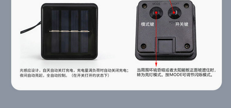 | Color | Línea negra de 5 metros 20 lámparas (modelo solar), línea transparente de 1,5 metros 10 lámparas (caja de baterías), línea negra de 5 metros 20 lámparas (modelo de caja de baterías), línea negra de 10 metros 40 lámparas (caja de baterías), línea negra de 5 metros 20 lámparas (modelo enchufable con enchufe trasero) |