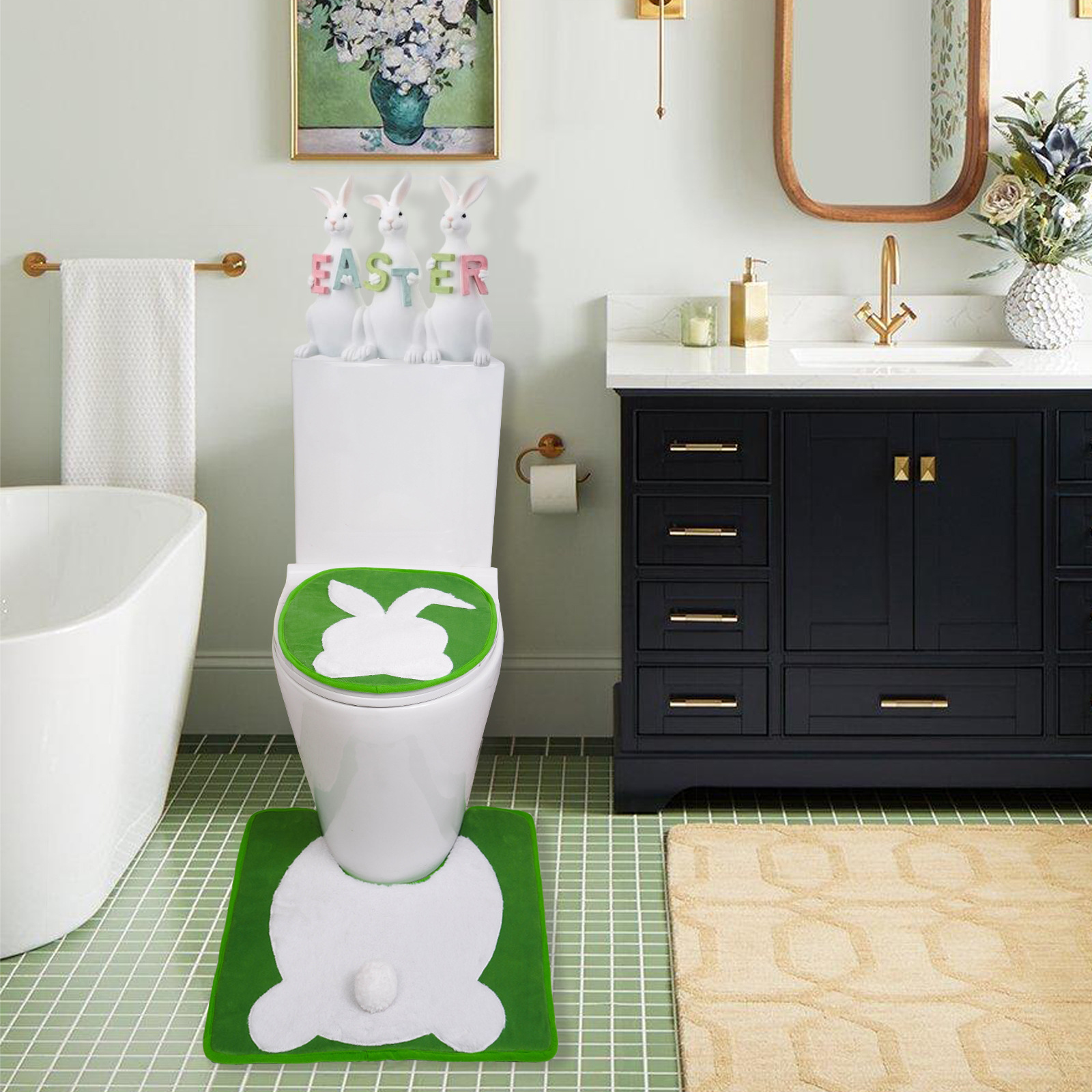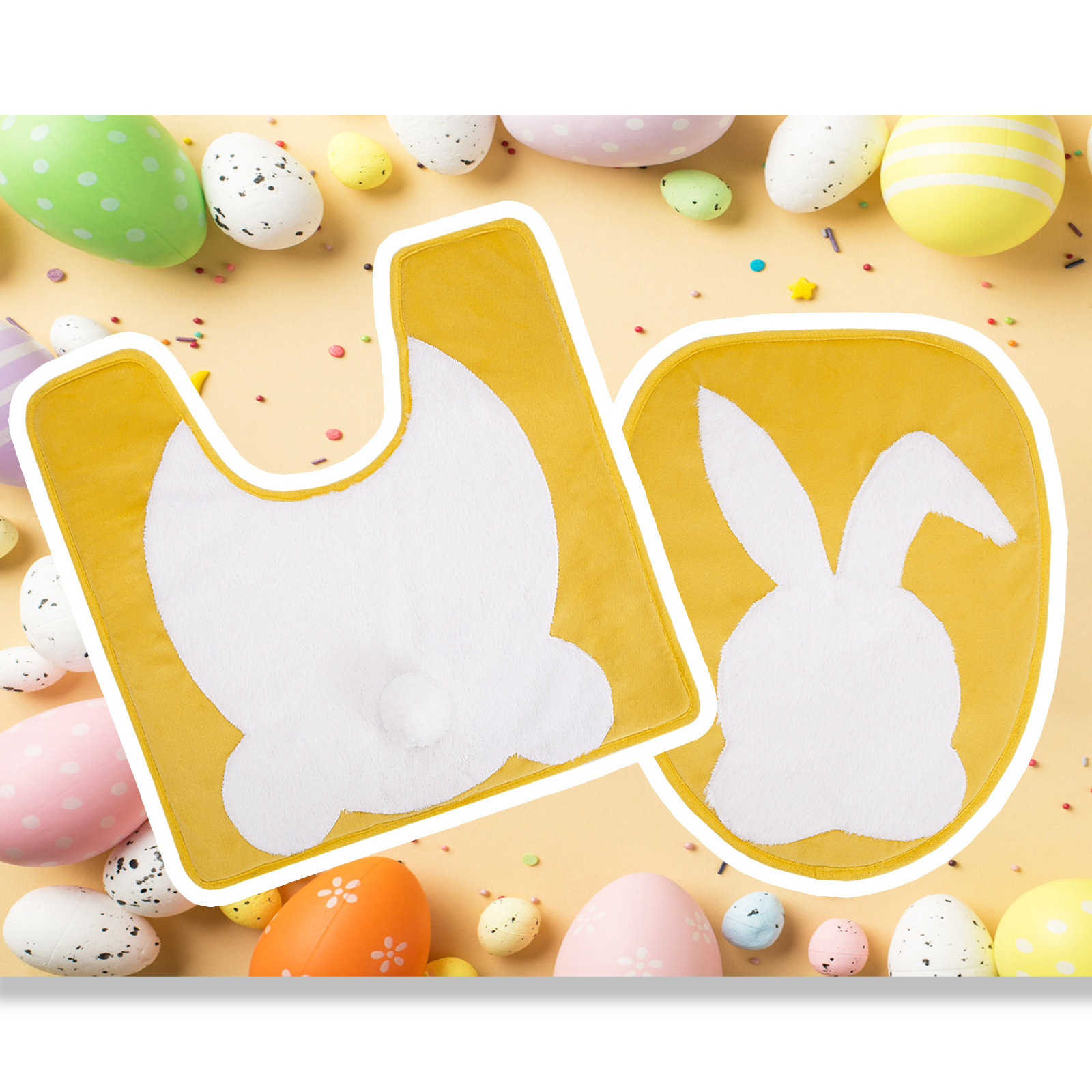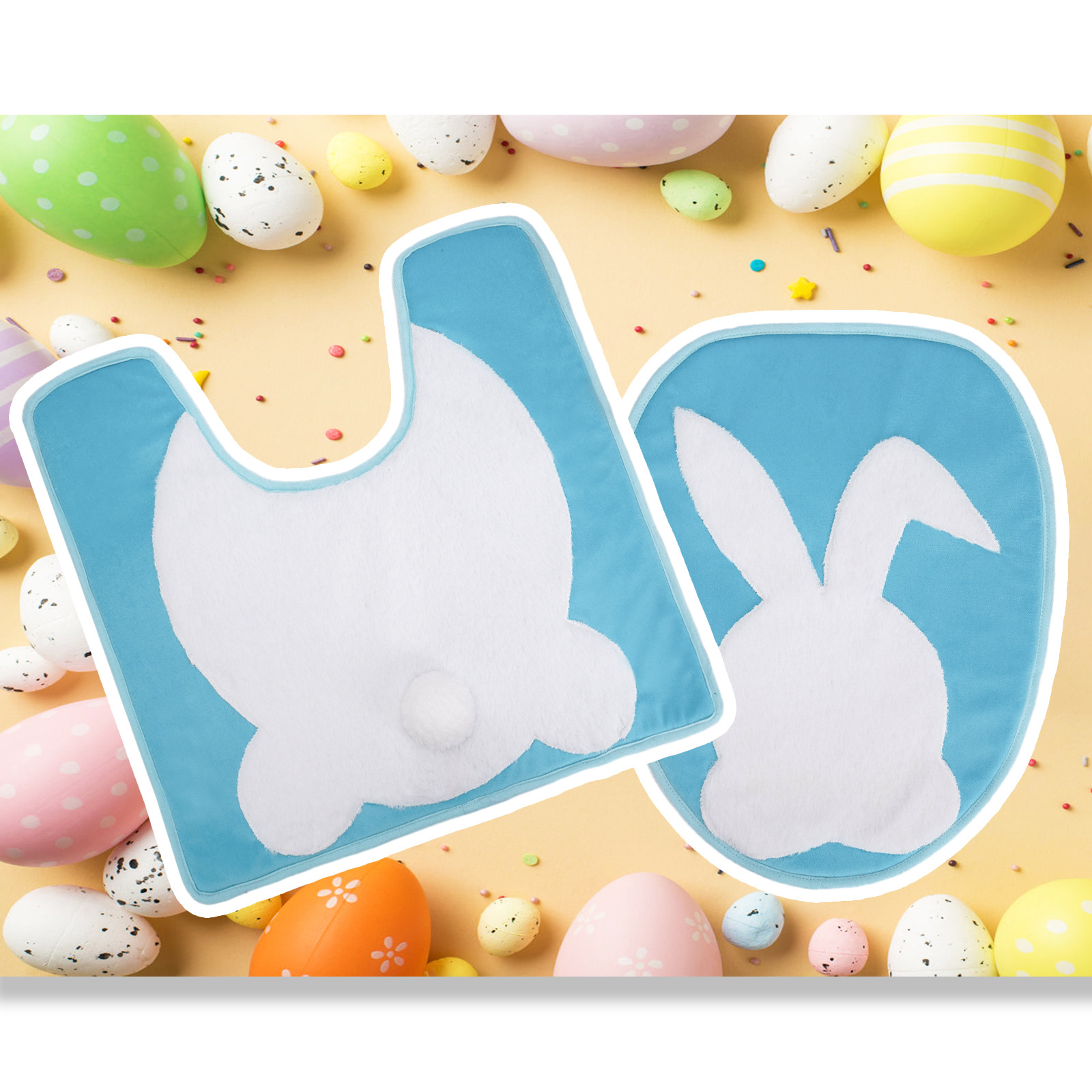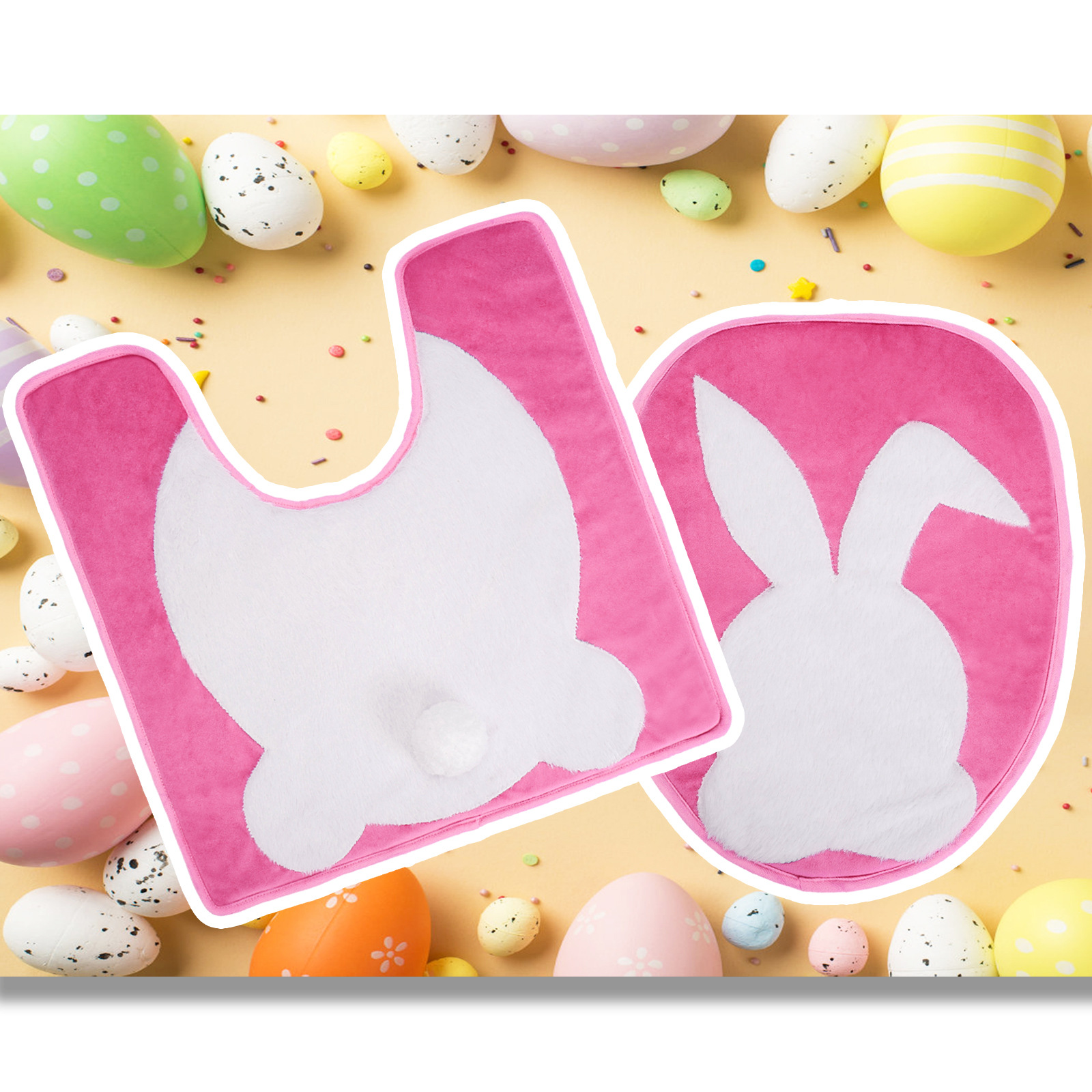 Nuevos productos transfronterizos decoración inodoro fiestas inodoro almohadilla de dos piezas set decoración conejo de Pascua inodoro almohadilla de pascua