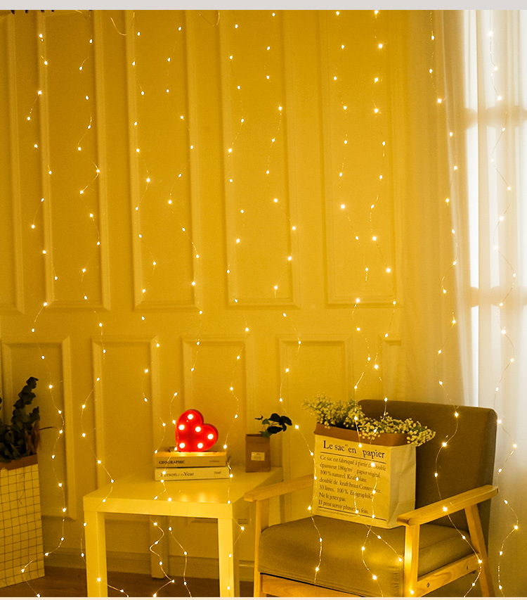 Transfronterizo venta caliente 3 * 3m USB cable de control remoto lámpara de cortina de cobre con gancho LED estrella de decoración de navidad lámpara de cadena