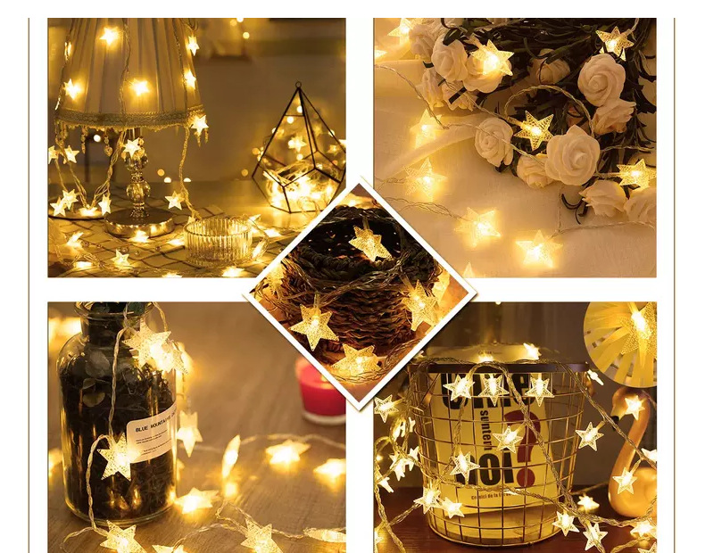 | Color de luz | Batería 2AA Star Light (siempre encendida),Luz de estrella de la batería 3AAA (siempre en + intermitente),Luz desnuda de batería 2AA sin estrellas (siempre encendida),3AAA batería desnuda luz sin estrellas (siempre encendido + intermitente) |