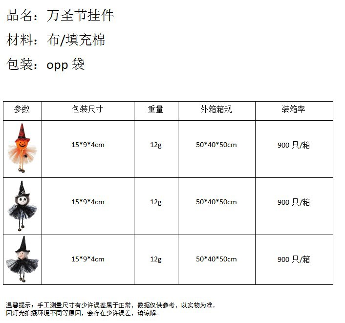 Transfronteriza nueva falda de gasa decorativa de Halloween bruja colgante de calabaza fantasma muñeca pequeño colgante