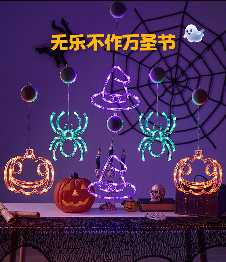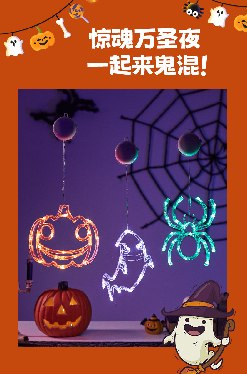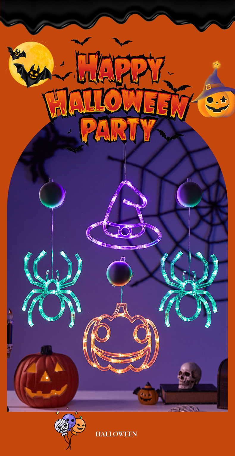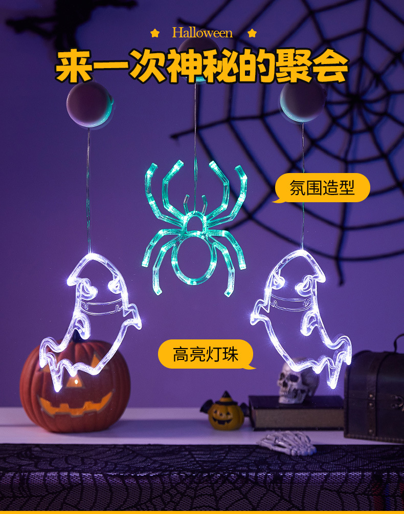 Halloween colgante ventosa lámpara de fiestas artículos decorativos calabaza araña decoración fiesta fantasma festival LED lámpara de estilo