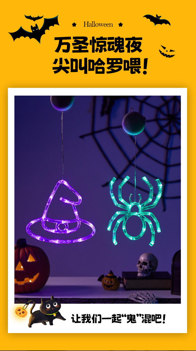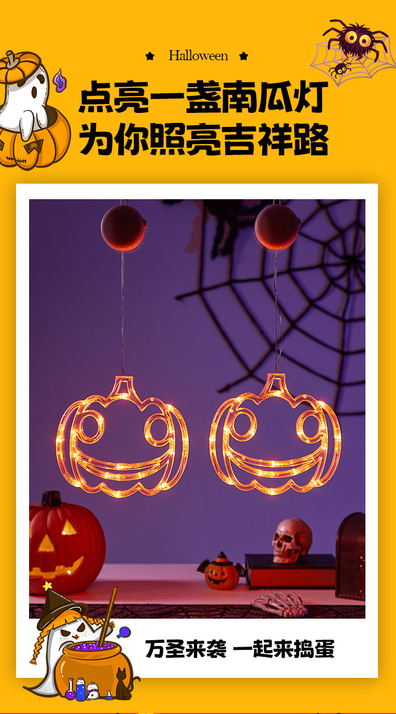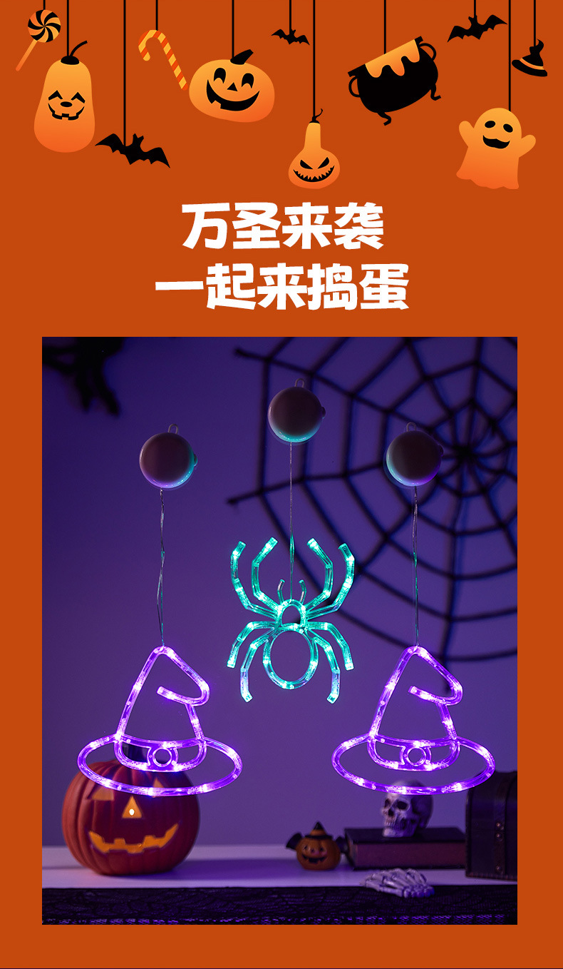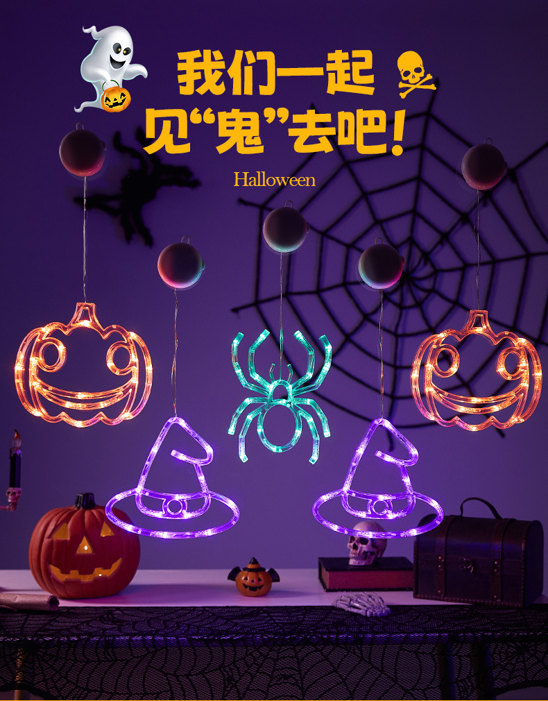 Halloween colgante ventosa lámpara de fiestas artículos decorativos calabaza araña decoración fiesta fantasma festival LED lámpara de estilo