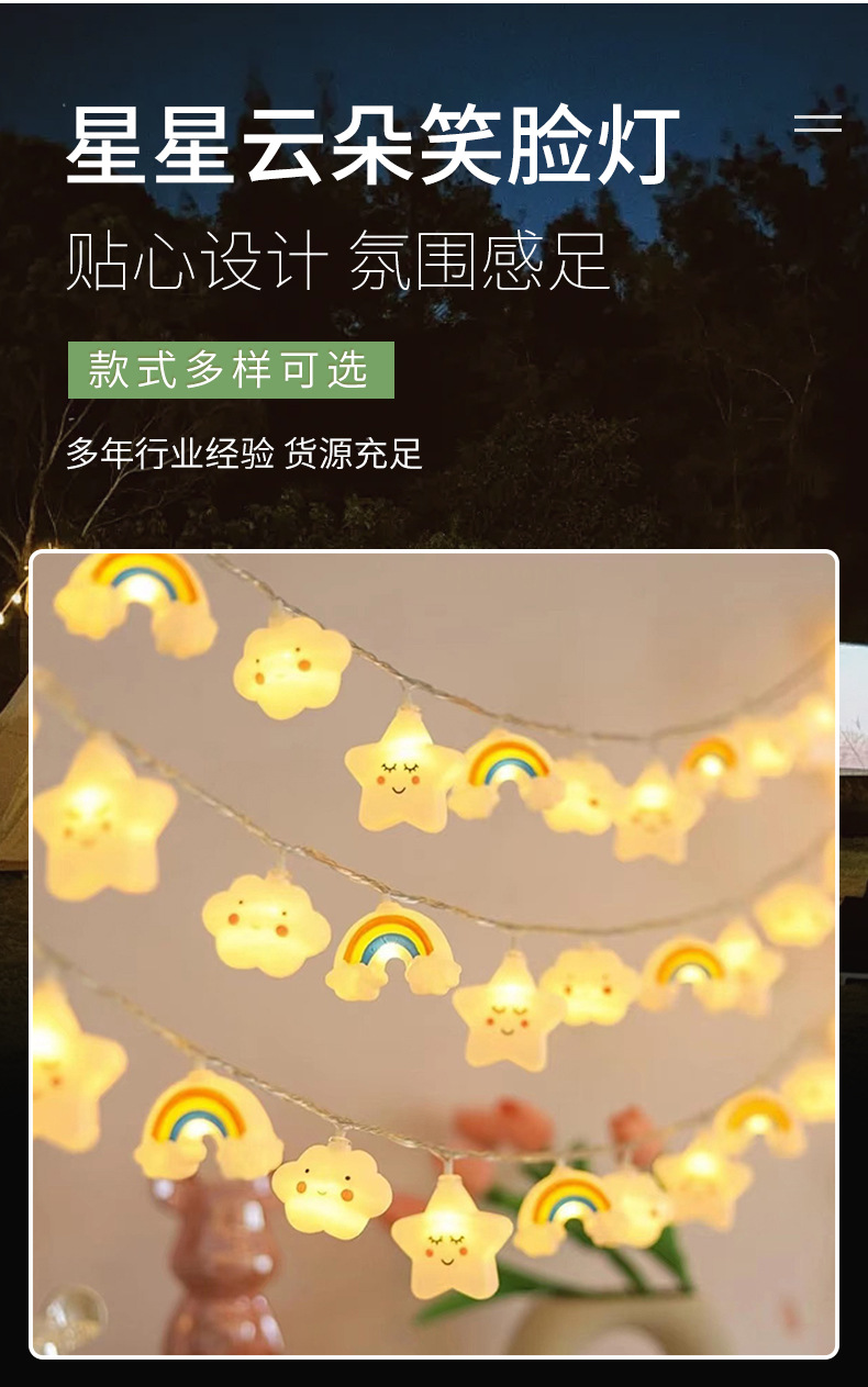LED estrellas nubes sonrientes lámparas string luces decorativas decoraciones de la habitación de niños accesorios fotográficos luces de atmósfera
