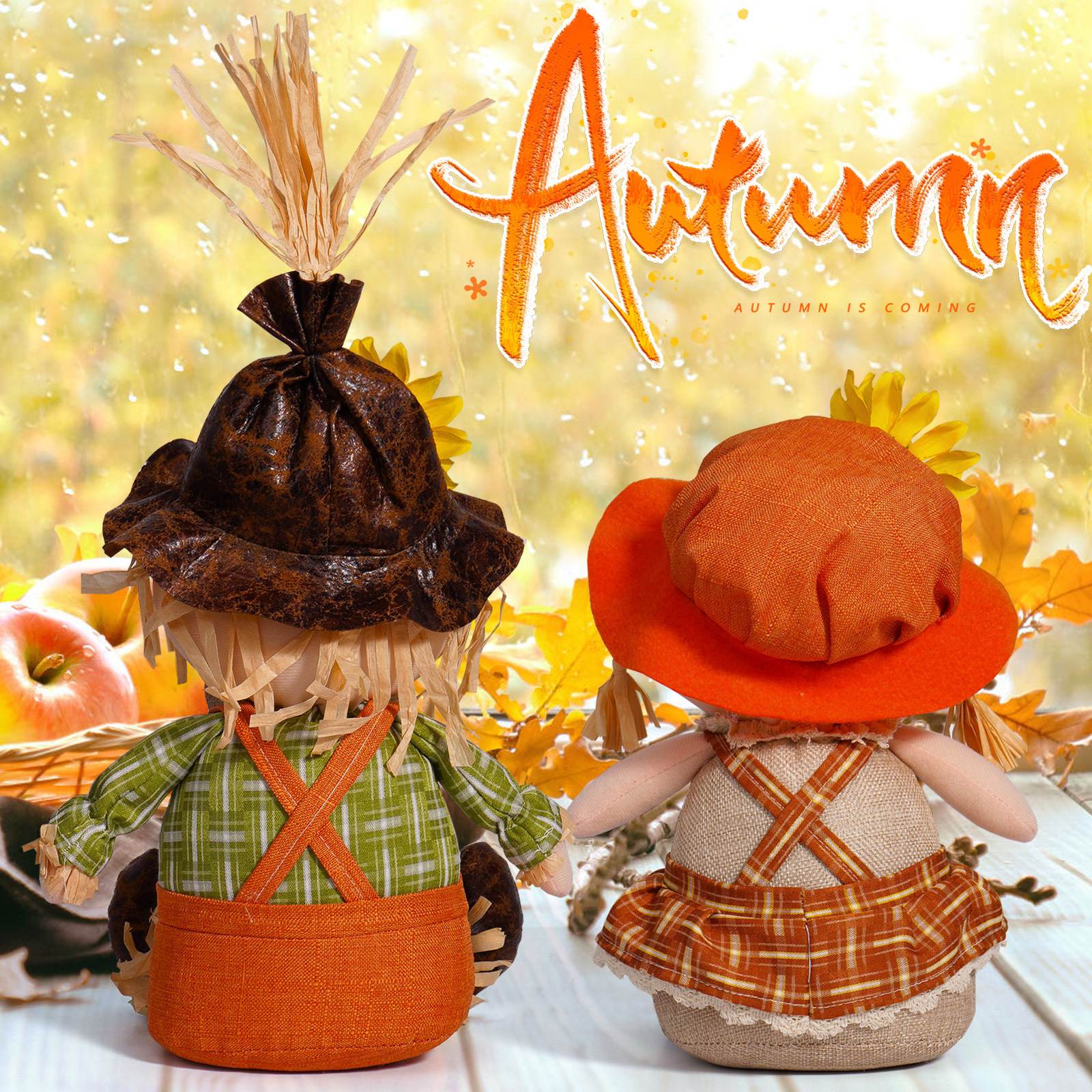 Transfronterizos nuevo hombre de paja de otoño girasol decoración muñeca de paja decoración decoración del festival de cosecha