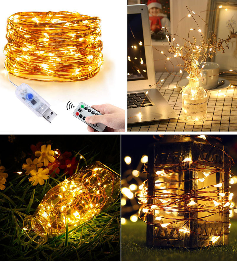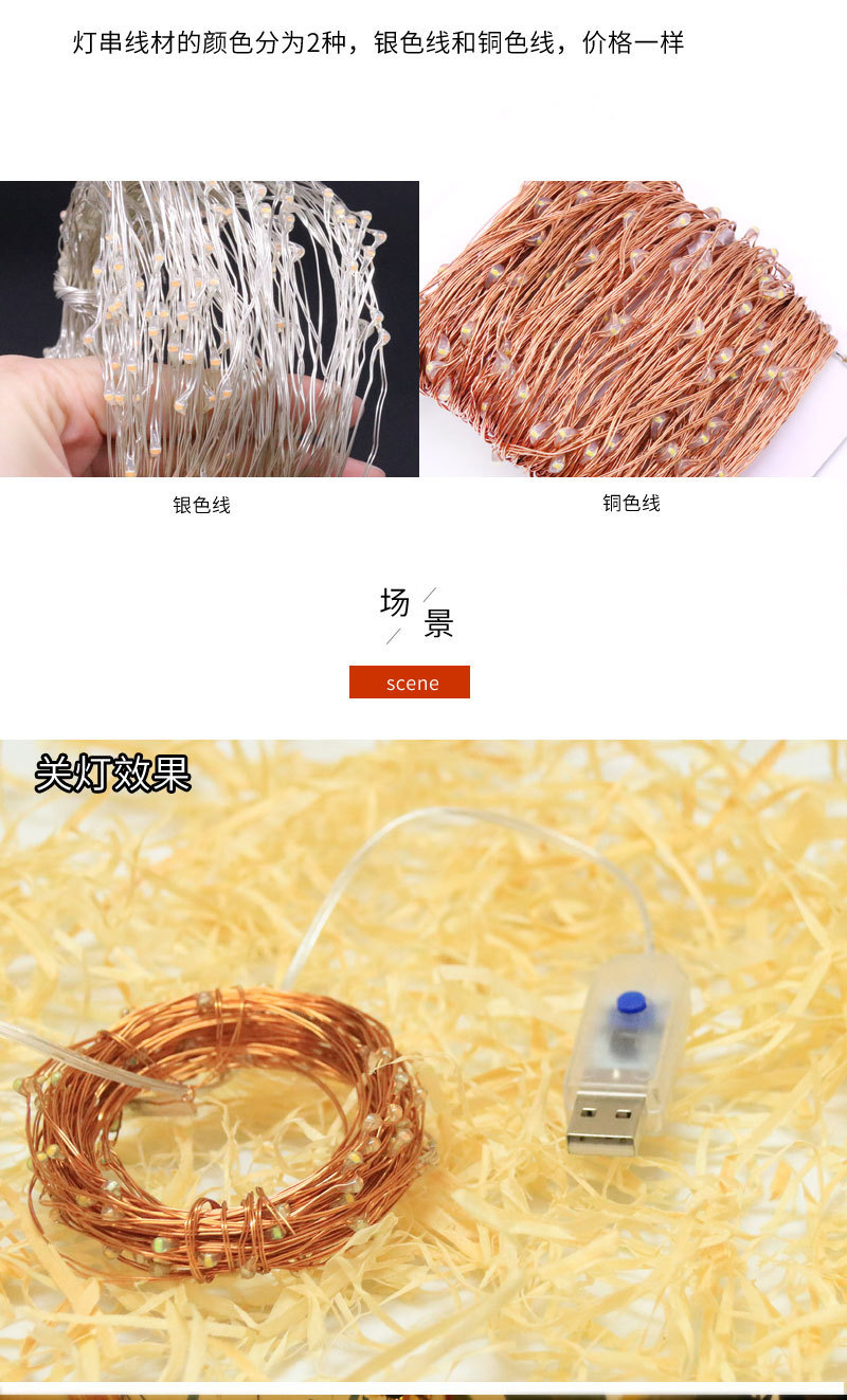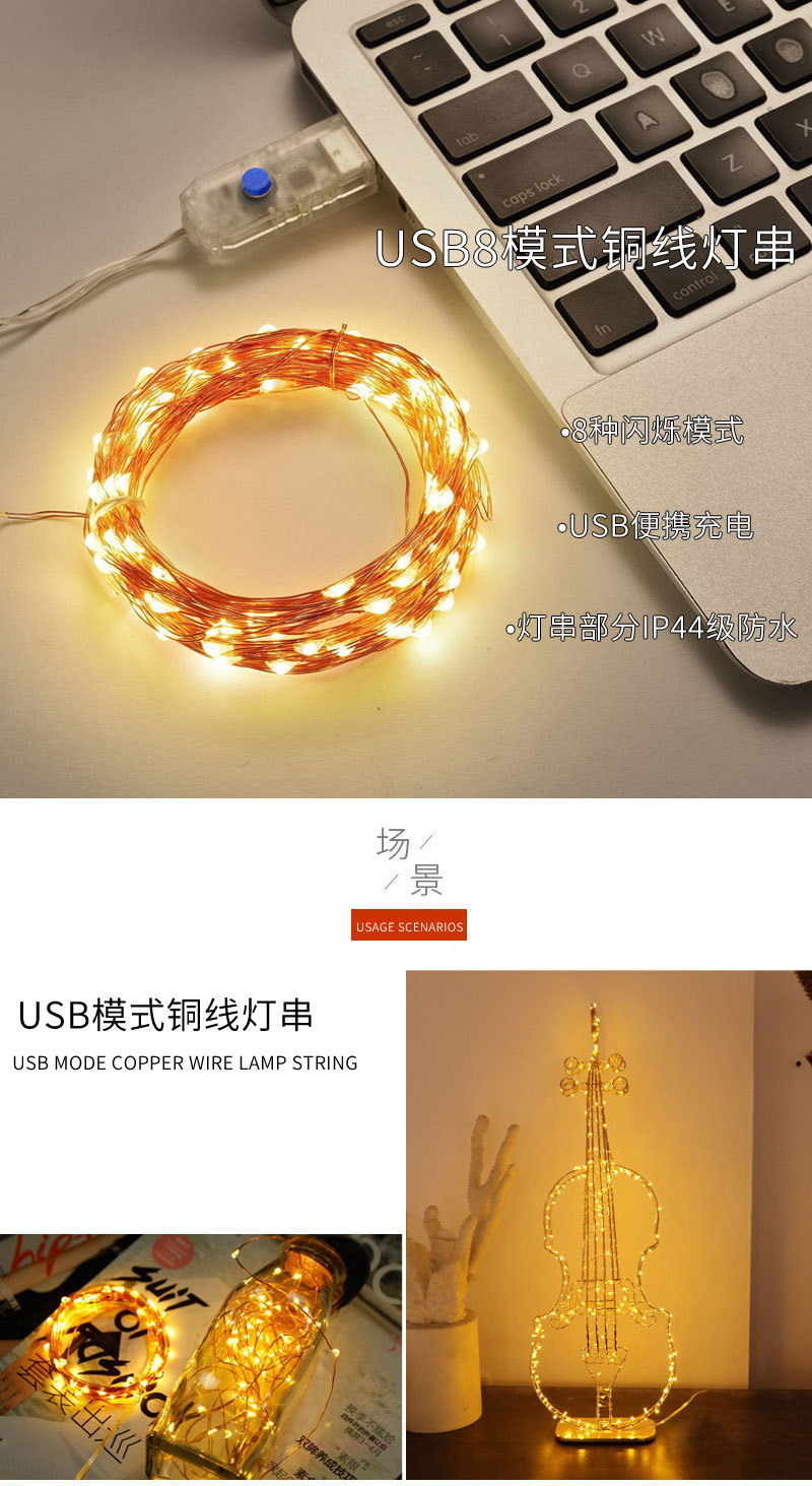 Transfronterizos LED cable de cobre lámpara USB cadena de lámpara de control remoto estrella habitación de acampamiento al aire libre luces decorativas iluminación de colores