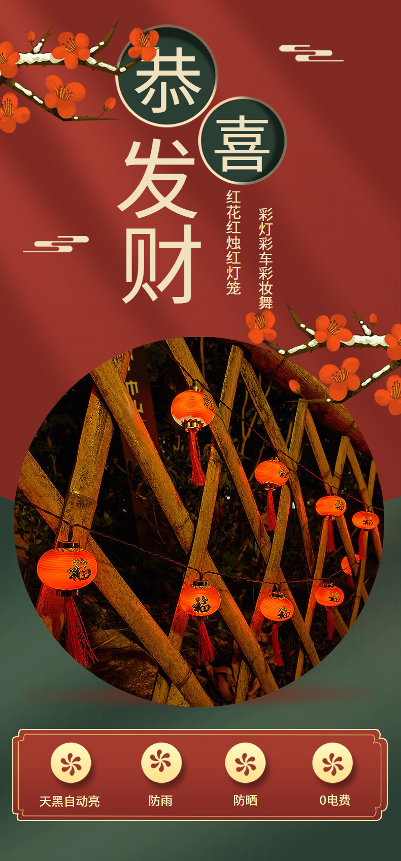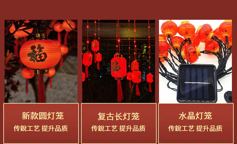 Nuevo retro linterna roja brillo luz solar cadena al aire libre a prueba de lluvia Festival de Primavera FESTIVAL DE Año Nuevo festivo luz decorativa