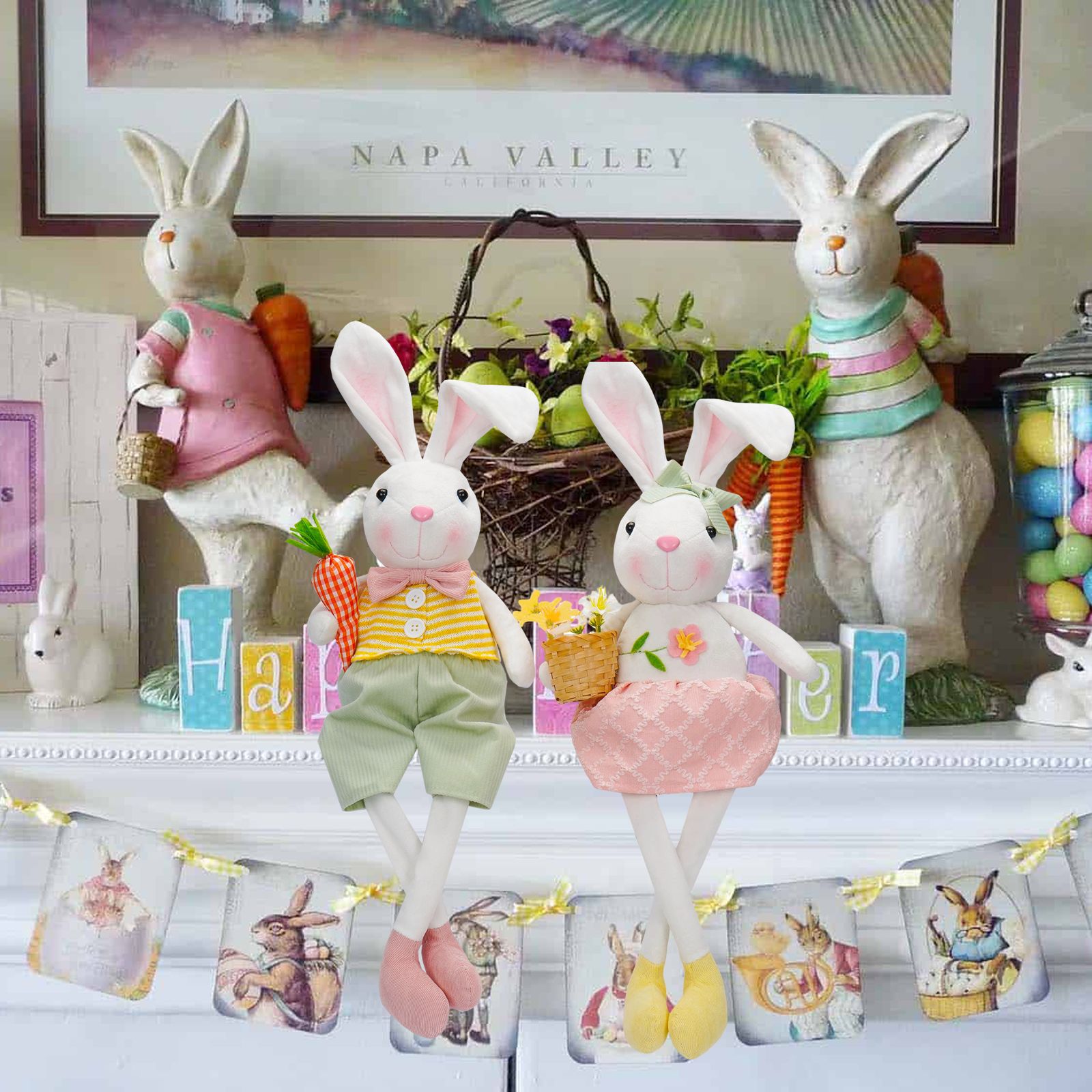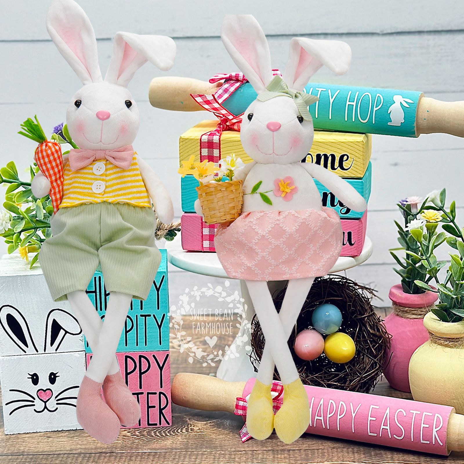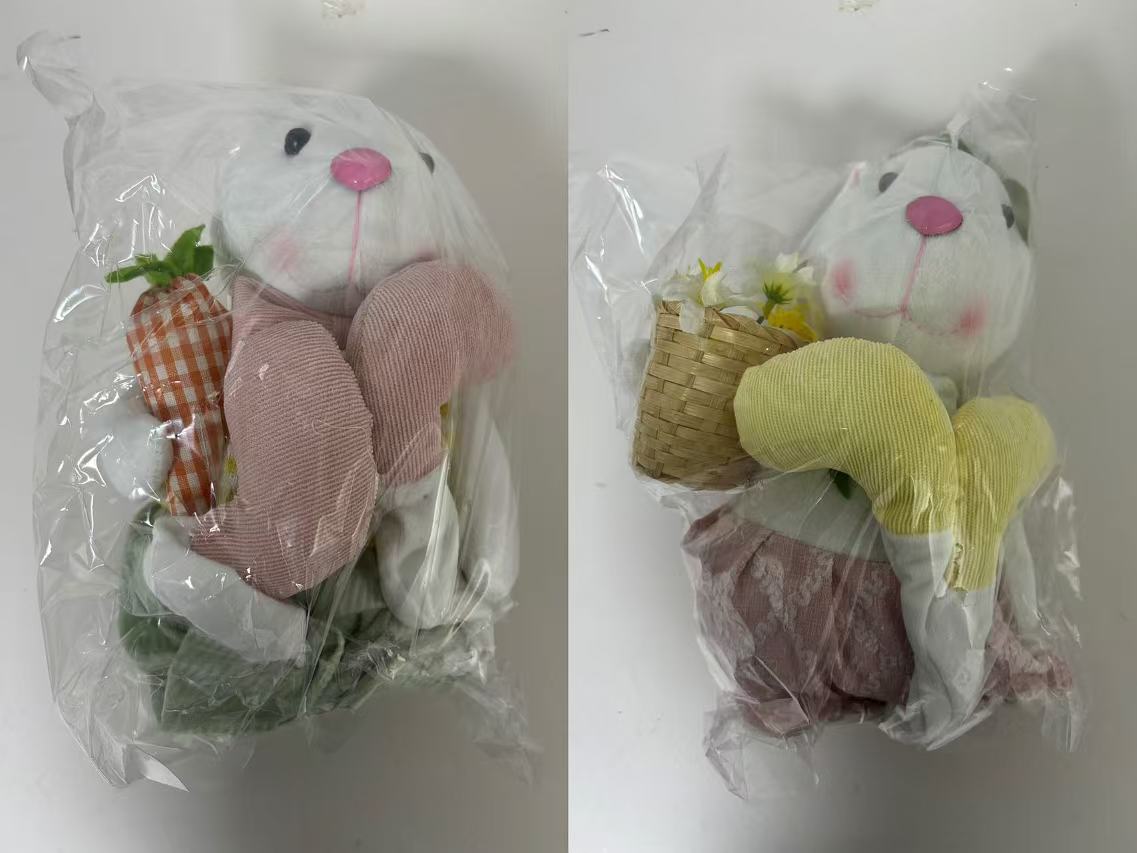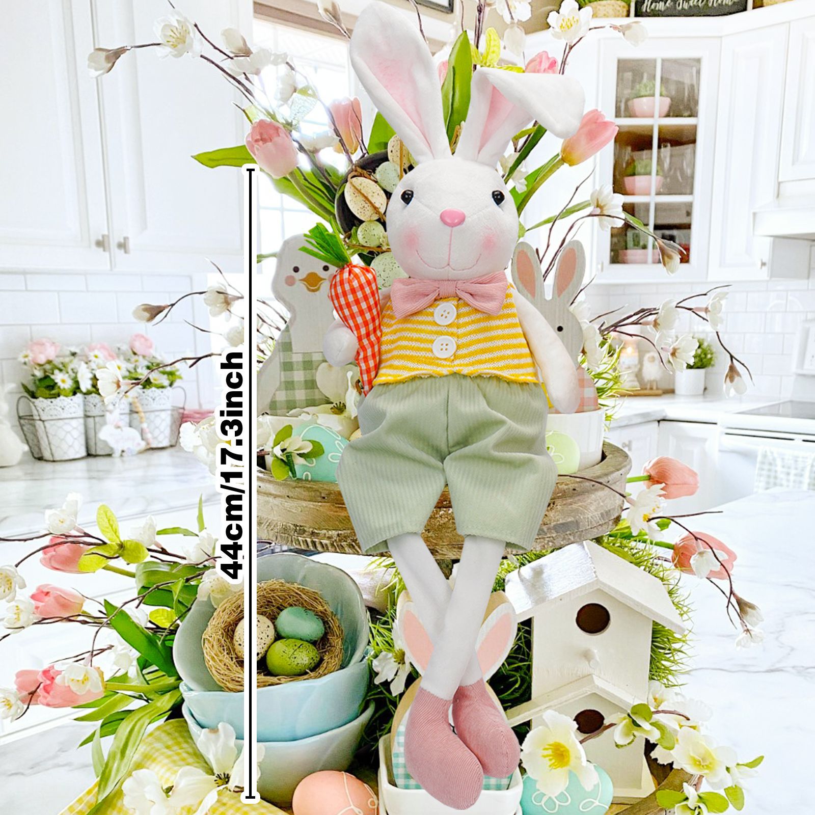Transfronterizo nueva muñeca de conejo de Pascua con cesta de flores de rábano lindo conejo muñeca decoración decoraciones navideñas