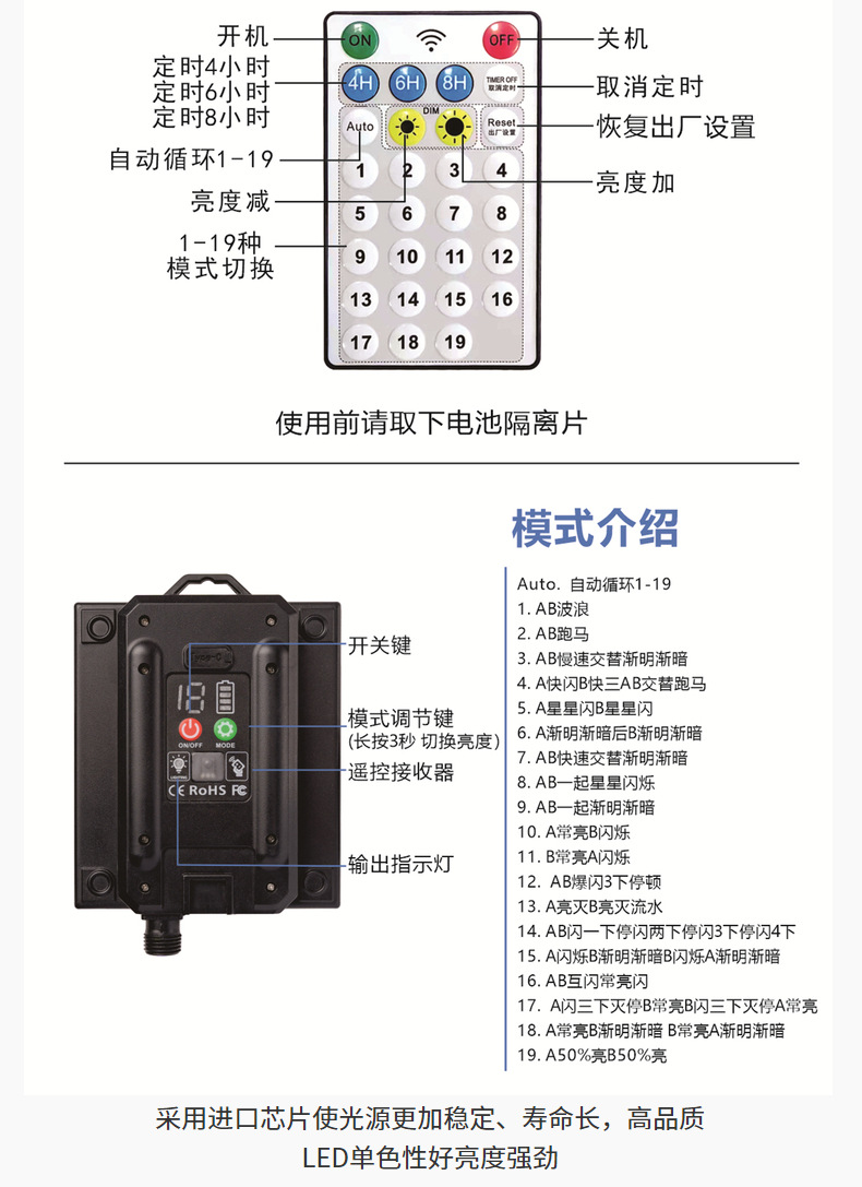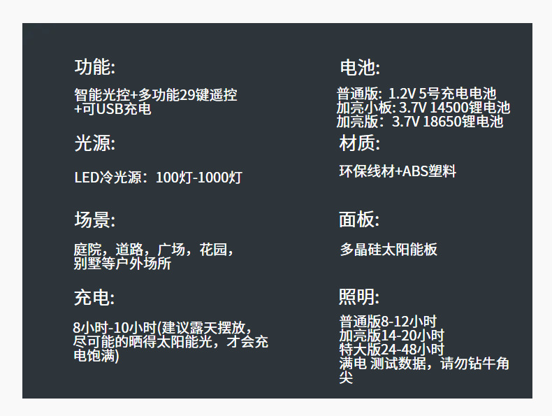 12 M 100 luces (iluminación solar tablero grande-con control remoto)
