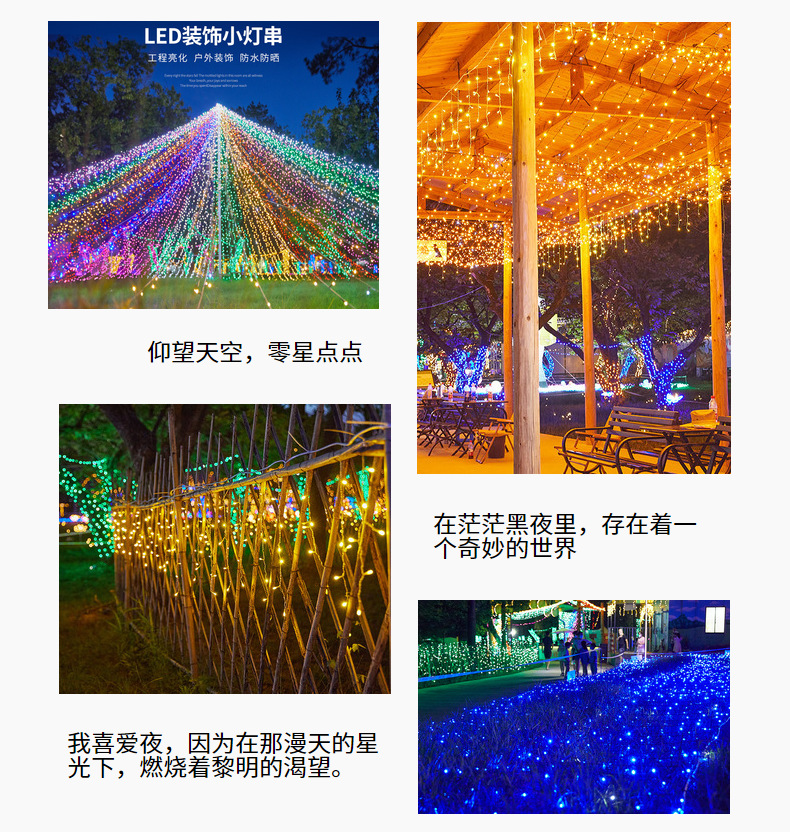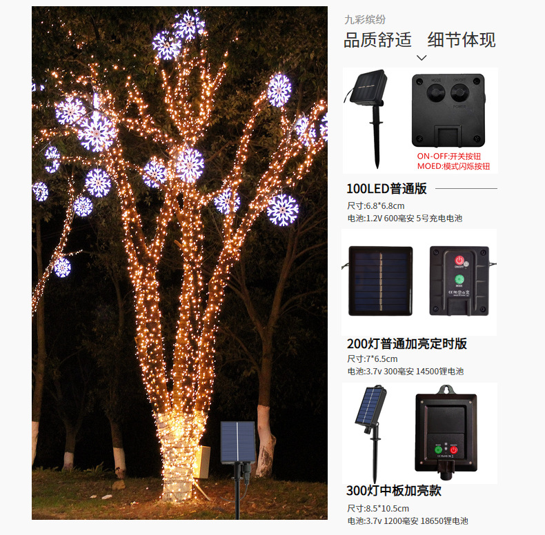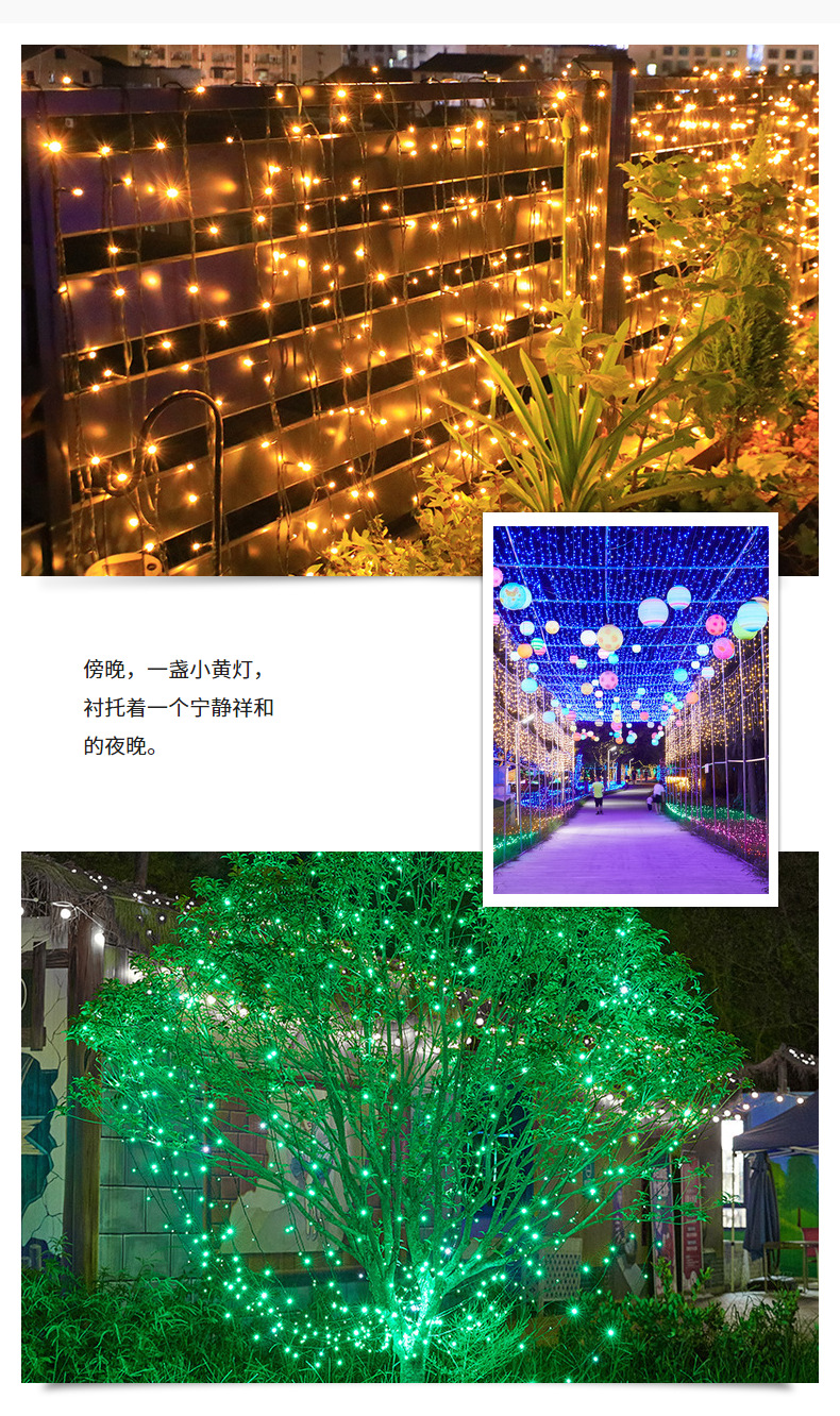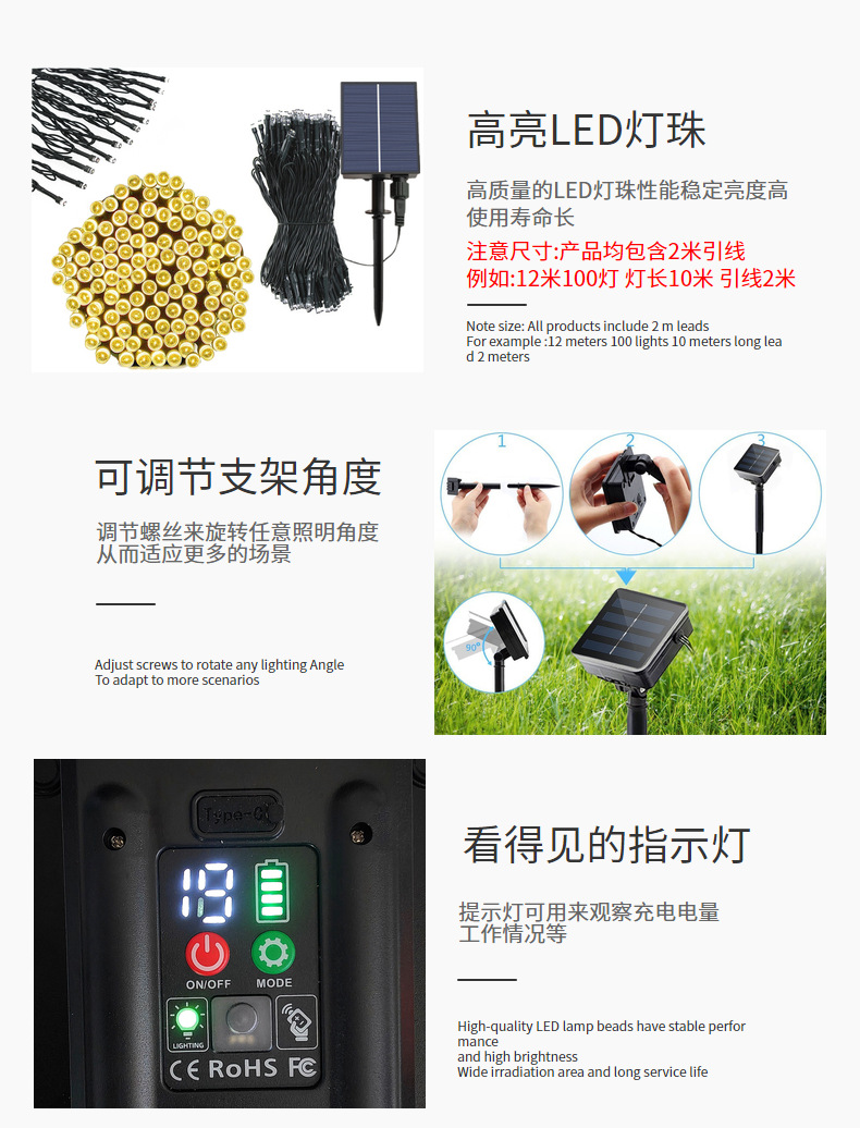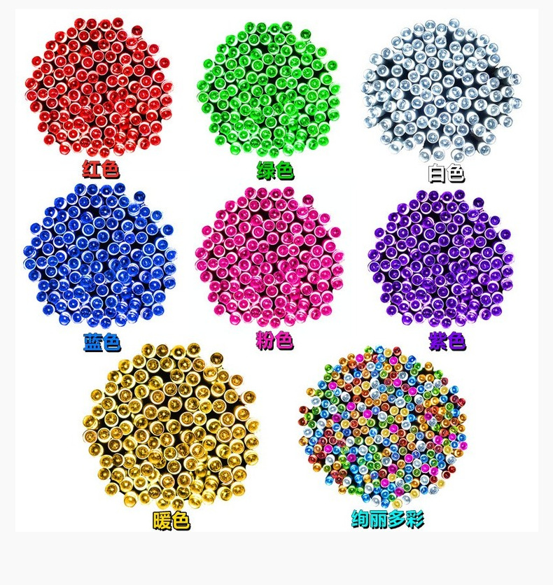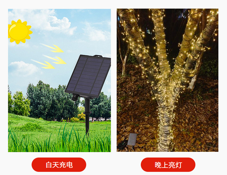Comercio electrónico transfronterizo luz solar cadena de luces de vacaciones jardín impermeable al aire libre luz decorativa de Navidad luz led luz de alambre de cobre