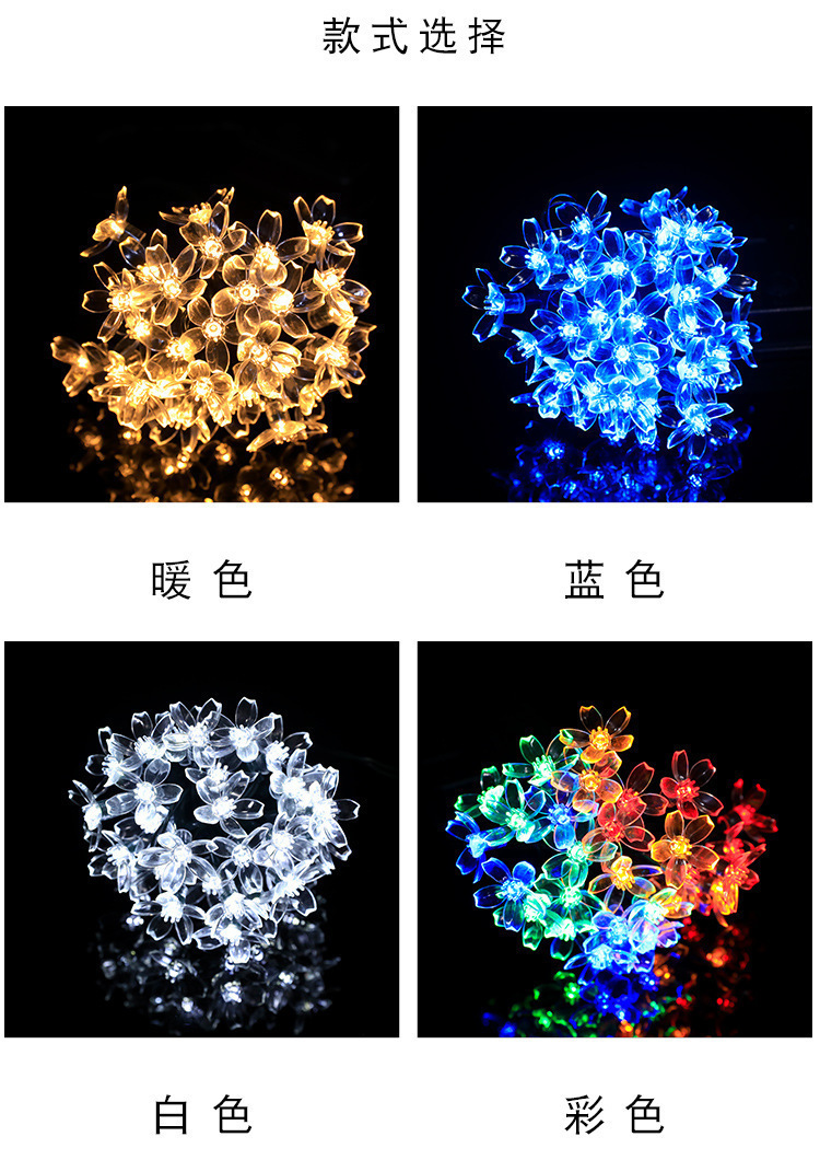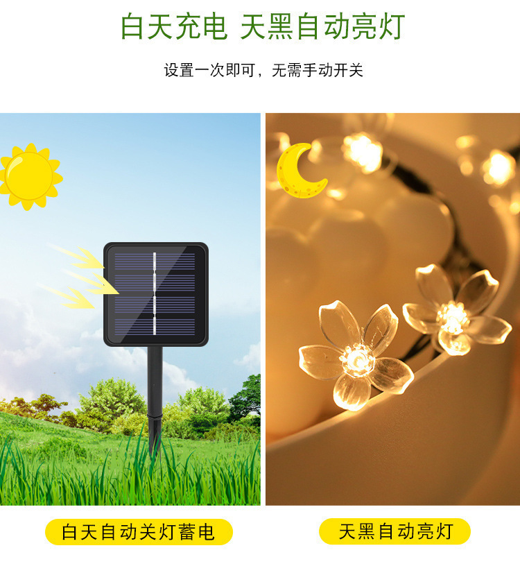 Luz solar de cerezo al aire libre impermeable decoración de jardín luz de atmósfera jardín diseño de balcón lámpara parpadeante LED lámpara de color