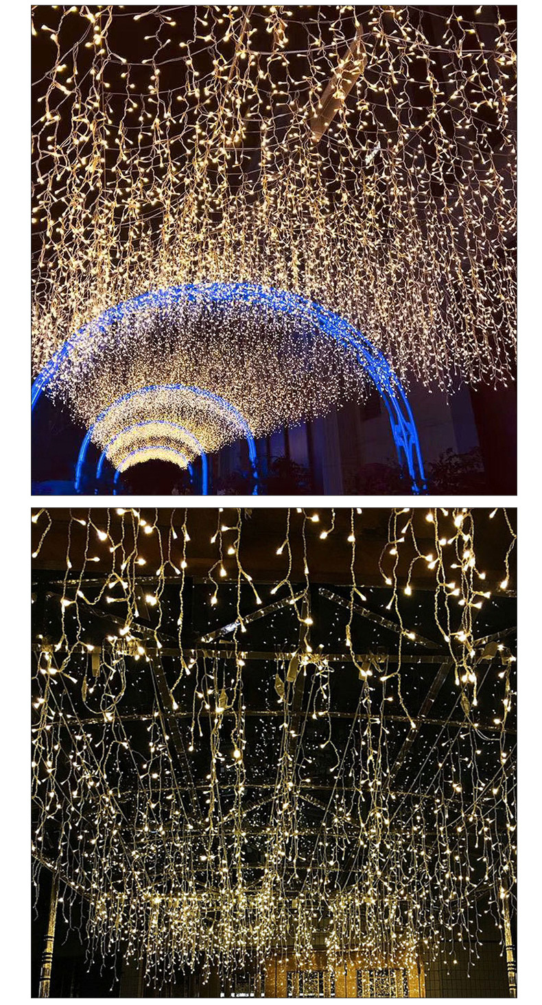 Las barras de hielo en los estantes de esta tienda se pueden conectar en serie. Para obtener más especificaciones, comuníquese con el servicio al cliente; cuatro colores; 10*0.3 m 120 luces caídas 40 colgantes 2 pines siempre encendidas; enchufables
