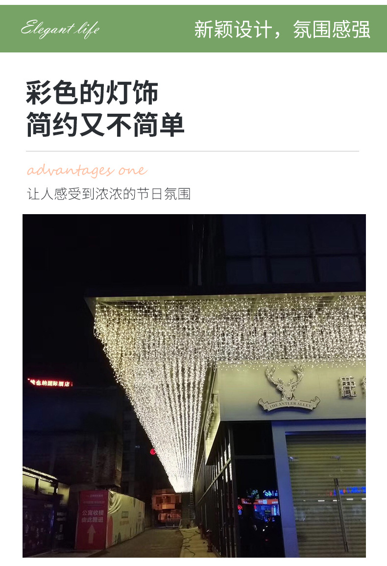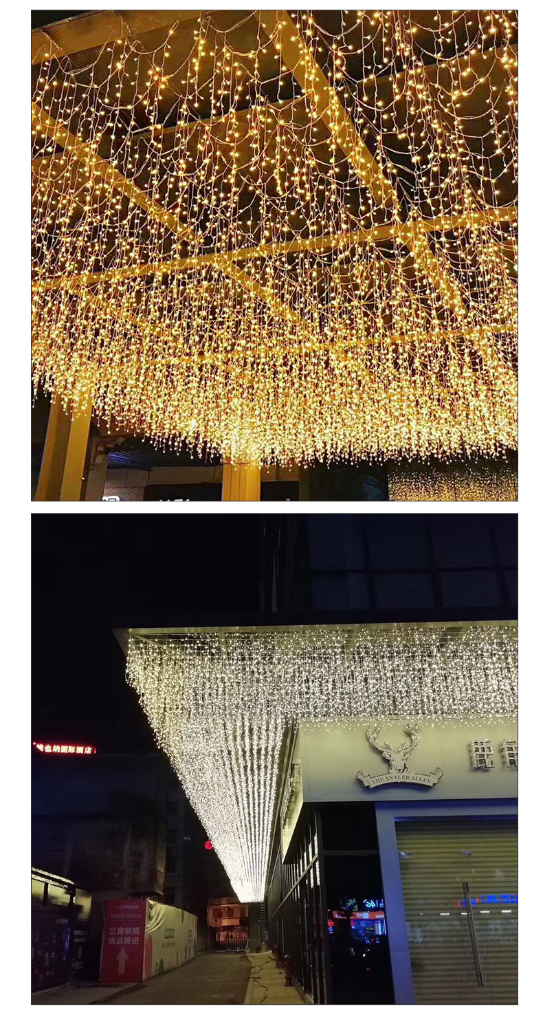 Las barras de hielo en los estantes de esta tienda se pueden conectar en serie. Para obtener más especificaciones, comuníquese con el servicio al cliente; cuatro colores; 10*0,8 m 273 luces caídas 39 colgantes 2 agujas siempre encendidas; enchufables