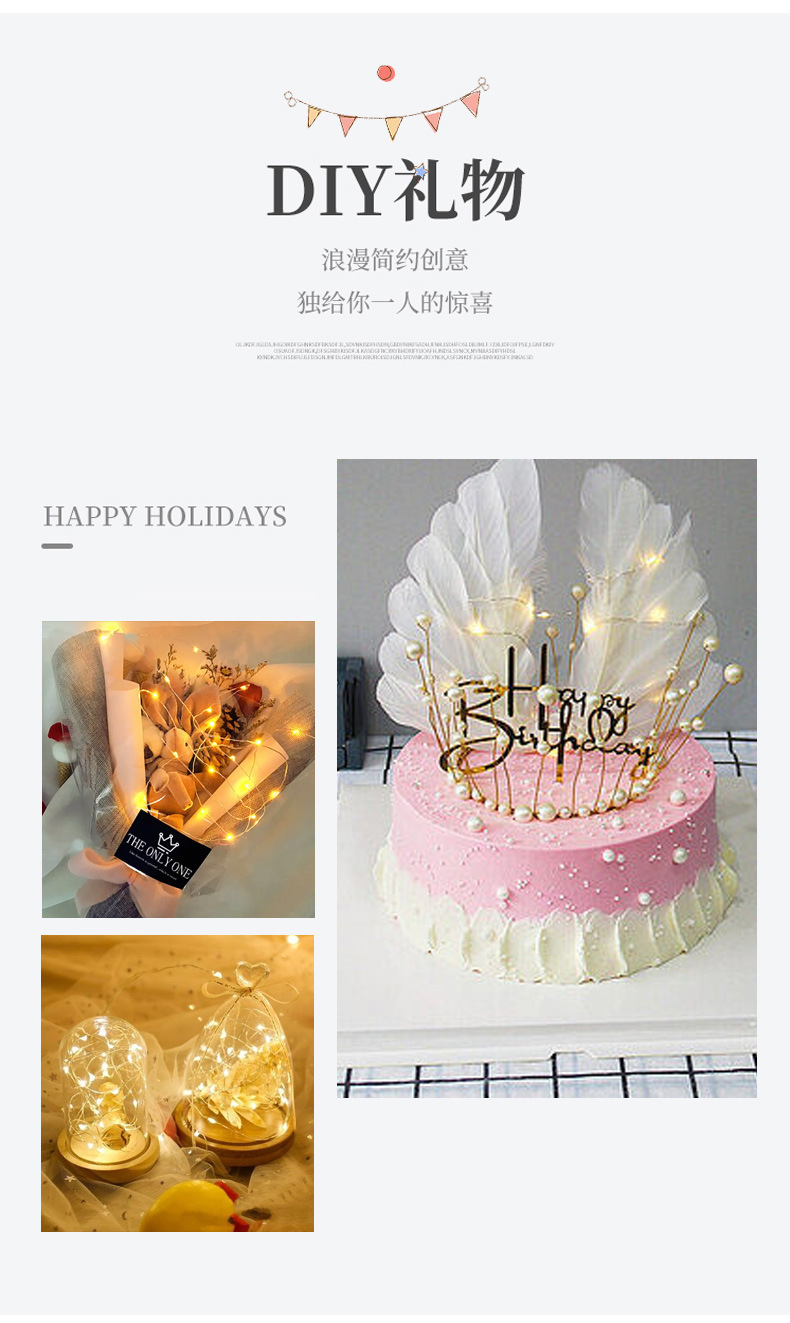 Caja de regalo LED ramo de pastel decoración de lámparas de colores AG13 batería de lámparas de cuerda pequeña caja blanca tres cadenas de lámparas de ajuste