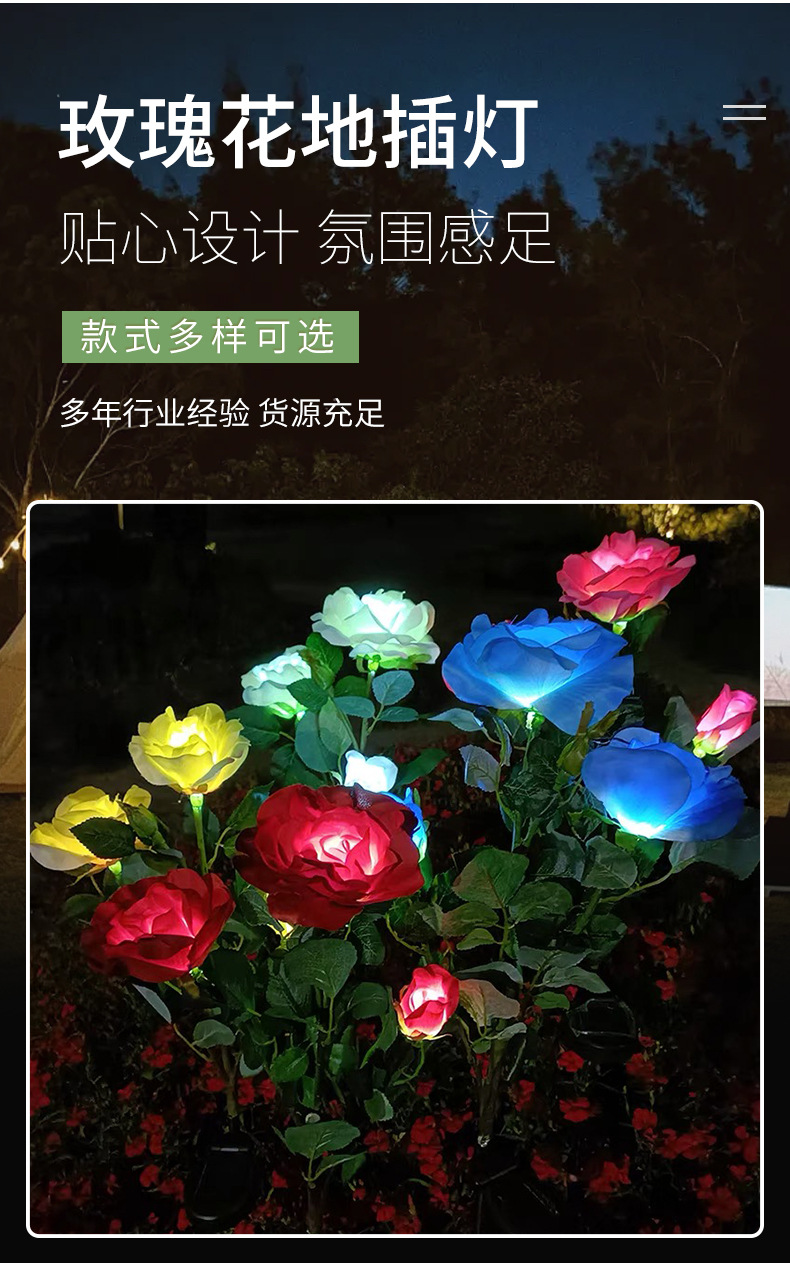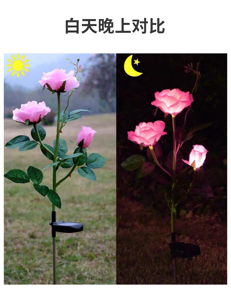 LED monocabeza de tres cabezas y cinco cabezas solar simulación de lámpara de suelo rosa lámpara de jardín exterior lámpara de decoración de césped