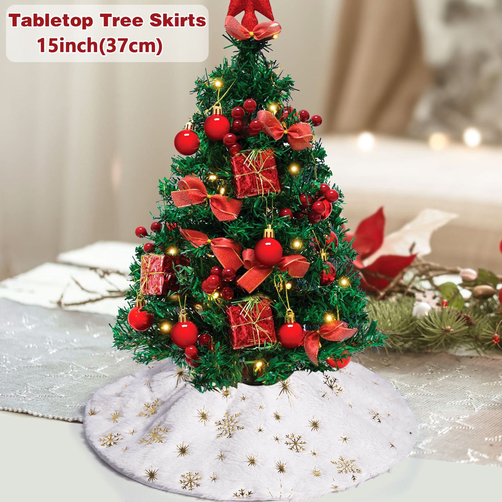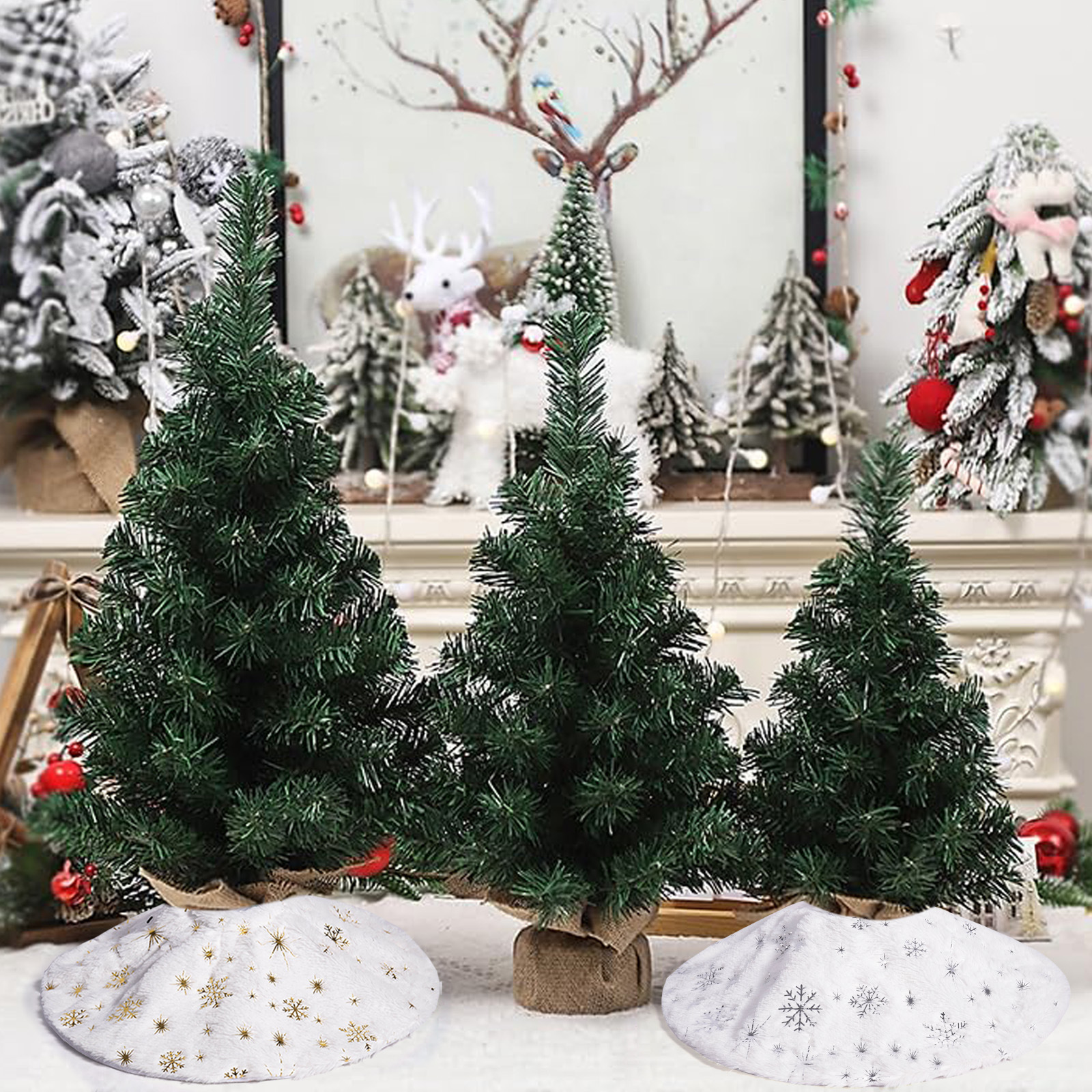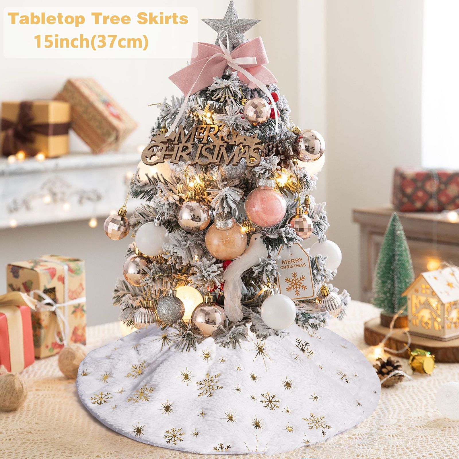 Navidad transfronteriza mini falda de árbol de Navidad decoración de escritorio delantal de árbol de Navidad copo de nieve de oro y plata falda de árbol de felpa