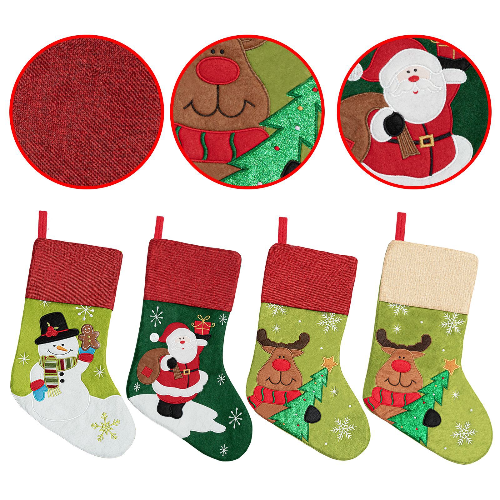 | Color | Papá Noel rojo, muñeco de nieve rojo, alce blanco, alce rojo |